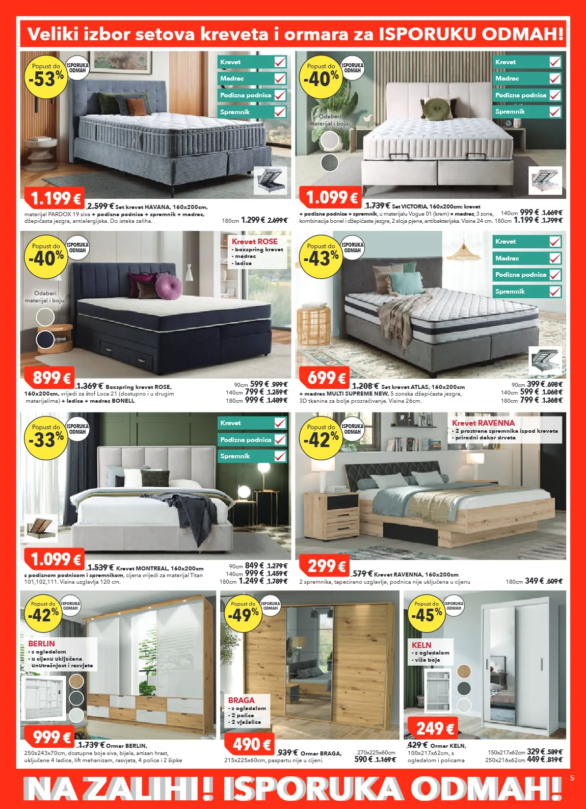 na zalihi ! isporuka odmah! na zalihi! isporuka odmah! 5 90cm 399 € 698 € 140cm 599 € 1.068 € 180cm 799 € 1.368 € 699 € 1.208 € set krevet atlas, 160x200cm + madrac multi supreme new , 5 zonska džepićasta jezgra, 3d tkanina za bolje prozračivanje. visina 26cm. 899 € 1.369 € boxspring krevet rose, 160x200cm, vrijedi za štof loca 21 (dostupno i u drugim materijalima) + ladica + madrac bonell 90cm 599 € 999 € 140cm 799 € 1.259 € 180cm 999 € 1.489 € krevet rose - boxspring krevet - madrac - ladice odaberi materijal i boju: isporuka odmah -40 % popust do isporuka odmah -43 % popust do krevet podizna podnica spremnik madrac veliki izbor setova kreveta i ormara za isporuku odmah! 1.099 € 1.539 € krevet montreal, 160x200cm s podiznom podnicom i spremnikom , cijena vrijedi za materijal titan 101,102,111. visina uzglavlja 120 cm. 299 € 579 € krevet ravenna, 160x200cm 2 spremnika, tapecirano uzglavlje, podnica nije uključena u cijenu 90cm 849 € 1.279 € 140cm 999 € 1.459 € 180cm 1.249 € 1.789 € 180cm 349 € 609 € 1.199 € 2.599 € set krevet havana, 160x200cm, materijal pardox 19 siva + podizna podnica + spremnik + madrac, džepičasta jezgra, antialergijska. do isteka zaliha. 180cm 1.299 € 2.699 € krevet podizna podnica spremnik madrac krevet podizna podnica spremnik madrac 140cm 999 € 1.669 € 180cm 1.199 € 1.799 € 1.099 € 1.739 € set victoria, 160x200cm: krevet + podizna podnica + spremnik , u materijalu vogue 01 (krem) + madrac , 3 zone, kombinacija bonel i džepićaste jezgre, 2 sloja pjene, antibakterijska. visina 24 cm. odaberi materijal i boju: isporuka odmah -53 % popust do isporuka odmah -40 % popust do krevet podizna podnica spremnik krevet ravenna - 2 prostrana spremnika ispod kreveta - prirodni dekor drveta isporuka odmah -33 % popust do isporuka odmah -42 % popust do 490 € 939 € ormar braga, 215x225x60cm, paspartu nije u cijeni. 270x225x60cm 590 € 1.169 € braga - s ogledalom - 2 police - 2 vješalice 249 € 429 € ormar keln, 100x217x62cm, s ogledalom i policama 150x217x62cm 329 € 589 € 250x216x62 cm 449 € 819 € keln - s ogledalom - više boja isporuka odmah -49 % popust do isporuka odmah -45 % popust do 999 € 1.739 € ormar berlin, 250x243x70cm, dostupne boje siva, bijela, artisan hrast, uključene 4 ladice, lift mehanizam, rasvjeta, 4 police i 2 šipke isporuka odmah -42 % popust do berlin - s ogledalom - u cijenu uključena unutrašnjost i rasvjeta