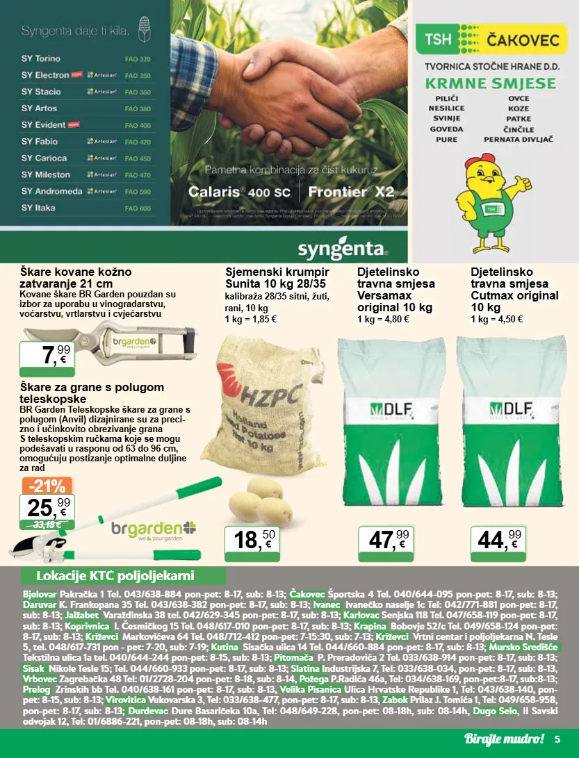 birajte mudro! 5 7 , 99 € -21% 33,18 € 25 , 99 € 18 , 50 € 47 , 99 € 44 , 99 € lokacije ktc poljoljekarni bjelovar pakračka 1 tel. 043/638-884 pon-pet: 8-17, sub: 8-13; čakovec športska 4 tel. 040/644-095 pon-pet: 8-17, sub: 8-13; daruvar k. frankopana 35 tel. 043/638-382 pon-pet: 8-17, sub: 8-13; ivanec ivanečko naselje 1c tel: 042/771-881 pon-pet: 8-17, sub: 8-13; jalžabet varaždinska 38 tel. 042/629-345 pon-pet: 8-17, sub: 8-13; karlovac senjska 118 tel. 047/658-119 pon-pet: 8-17, sub: 8-13; koprivnica i. česmičkog 15 tel. 048/617-010 pon-pet: 8-17, sub: 8-13; krapina bobovje 52/c tel. 049/658-124 pon-pet: 8-17, sub: 8-13; križevci markovićeva 64 tel. 048/712-412 pon-pet: 7-15:30, sub: 7-13; križevci vrtni centar i poljoljekarna n. tesle 5, tel. 048/617-731 pon - pet: 7-20, sub: 7-19; kutina sisačka ulica 14 tel. 044/660-884 pon-pet: 8-17, sub: 8-13; mursko središće tekstilna ulica 1a tel. 040/644-244 pon-pet: 8-15, sub: 8-13; pitomača p. preradovića 2 tel. 033/638-914 pon-pet: 8-17, sub: 8-13; sisak nikole tesle 15; tel. 044/660-933 pon-pet: 8-17, sub: 8-13; slatina industrijska 7, tel: 033/638-034, pon-pet: 8-17, sub: 8-13, vrbovec zagrebačka 48 tel: 01/2728-204 pon-pet: 8-18, sub: 8-14, požega p.radića 46a, tel: 034/638-169, pon-pet:8-17, sub:8-13; prelog zrinskih bb tel. 040/638-161 pon-pet: 8-17, sub: 8-13, velika pisanica ulica hrvatske republike 1, tel: 043/638-140, pon- pet: 8-15, sub: 8-13; virovitica vukovarska 3, tel: 033/638-477, pon-pet: 8-17, sub: 8-13, zabok prilaz j. tomića 1, tel: 049/658-958, pon-pet: 8-17, sub: 8-13; đurđevac đure basaričeka 10a, tel: 048/649-228, pon-pet: 08-18h, sub: 08-14h, dugo selo, ii savski odvojak 12, tel: 01/6886-221, pon-pet: 08-18h, sub: 08-14h škare kovane kožno zatvaranje 21 cm kovane škare br garden pouzdan su izbor za uporabu u vinogradarstvu, voćarstvu, vrtlarstvu i cvjećarstvu škare za grane s polugom teleskopske br garden teleskopske škare za grane s polugom (anvil) dizajnirane su za preci - zno i učinkovito obrezivanje grana s teleskopskim ručkama koje se mogu podešavati u rasponu od 63 do 96 cm, omogućuju postizanje optimalne duljine za rad sjemenski krumpir sunita 10 kg 28/35 kalibraža 28/35 sitni, žuti, rani, 10 kg 1 kg = 1,85 € djetelinsko travna smjesa versamax original 10 kg 1 kg = 4,80 € djetelinsko travna smjesa cutmax original 10 kg 1 kg = 4,50 €