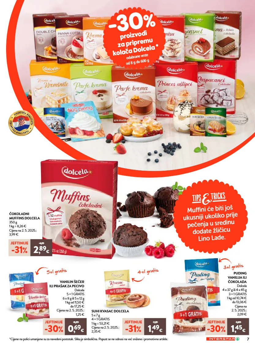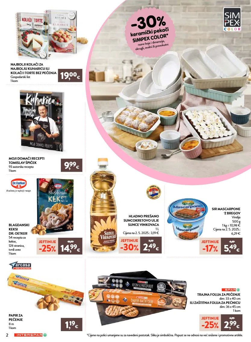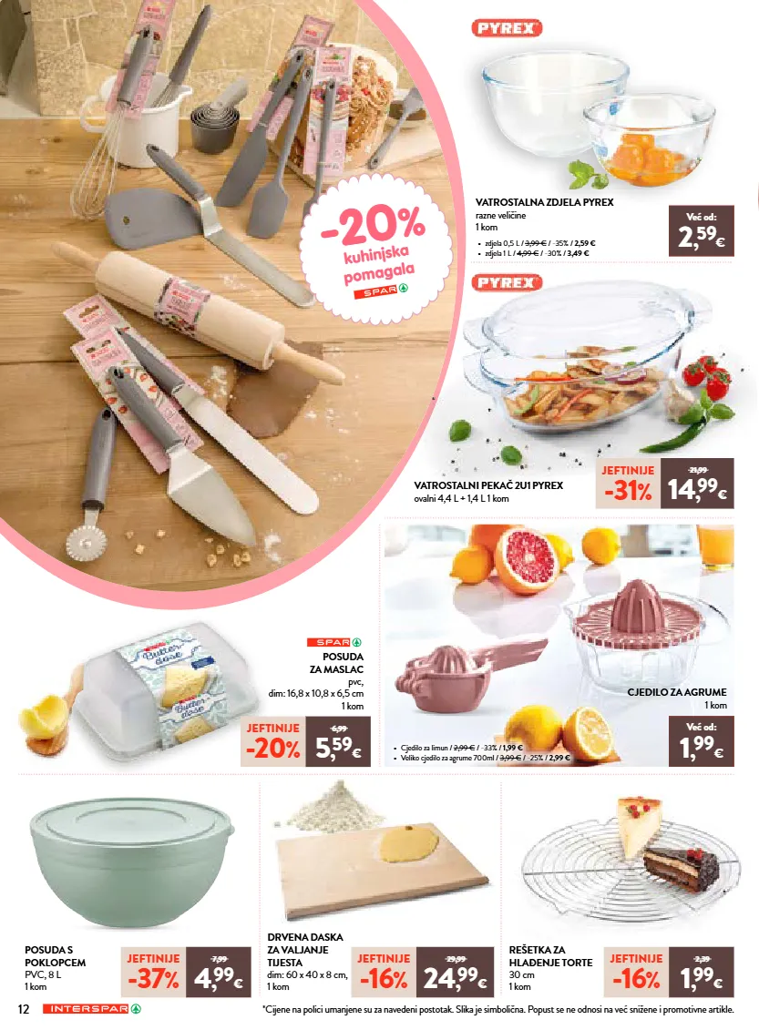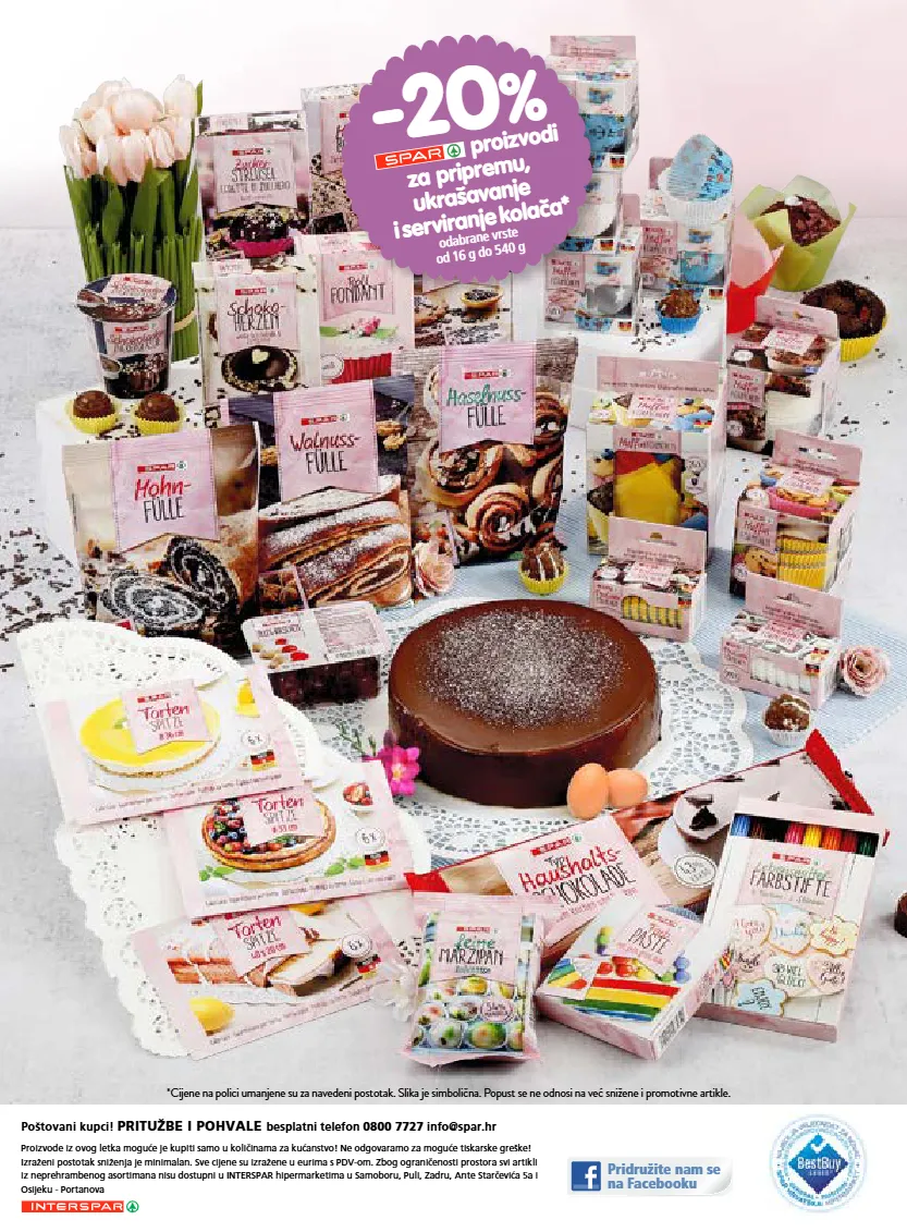 Pridružite nam se na Facebooku Poπtovani kupci! PRITUÆBE I POHVALE besplatni telefon 0800 7727 info@spar.hr Proizvode iz ovog letka moguće je kupiti samo u količinama za kućanstvo! Ne odgovaramo za moguće tiskarske greške! Izraženi postotak sniženja je minimalan. Sve cijene su izražene u eurima s PDV-om. Zbog ograničenosti prostora svi artikli iz neprehrambenog asortimana nisu dostupni u INTERSPAR hipermarketima u Samoboru, Puli, Zadru, Ante Starčevića 5a i Osijeku - Portanova -20 % proizvodi za pripremu, ukrašavanje i serviranje kolača* odabrane vrste od 16 g do 540 g *Cijene na polici umanjene su za navedeni postotak. Slika je simbolična. Popust se ne odnosi na već snižene i promotivne artikle.