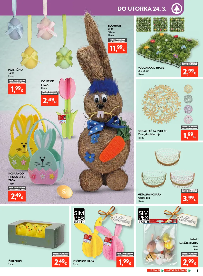 3 žuti pilići 1 kom jaja u dječjem stilu 6 cm 1 kom zečići od filca 1 kom košara od filca u stilu zeca 1 kom metalna košara različite boje 1 kom podmetač za cvijeće 35 cm, 4 različite boje 1 kom cvijet od filca 1 kom podloga od trave 25 x 25 cm 1 kom samo u interspar hipermarketima 1 , 99 € samo u interspar hipermarketima 2 , 49 € samo u interspar hipermarketima 2 , 49 € samo u interspar hipermarketima 1 , 99 € samo u interspar hipermarketima 3 , 99 € samo u interspar hipermarketima 2 , 99 € samo u interspar hipermarketima 1 , 99 € samo u interspar hipermarketima 2 , 49 € samo u interspar hipermarketima 2 , 99 € plastično jaje 1 kom do utorka 24. 3. samo u interspar hipermarketima 11 , 99 € slamnati zec 58 cm 1 kom