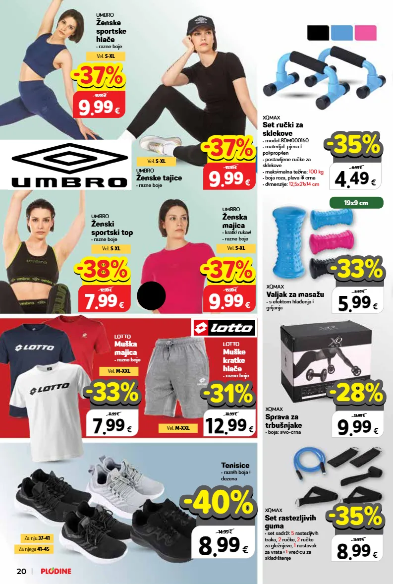lotto muška majica • razne boje xqmax sprava za trbušnjake • boja: sivo-crna umbro ženske sportske hlače • razne boje umbro ženski sportski top • razne boje xqmax set ručki za sklekove • model 8dm000160 • materijal: pjena i polipropilen • postavljene ručke za sklekove • maksimalna težina: 100 kg • boja roza, plava ili crna • dimenzije: 12,5x21x14 cm tenisice • raznih boja i dezena umbro ženske tajice • razne boje lotto muške kratke hlače • razne boje xqmax valjak za masažu • s efektom hlađenja i grijanja umbro ženska majica • kratki rukavi • razne boje xqmax set rastezljivih guma • set sadrži: 5 rastezljivih traka, 2 ručke, 2 ručke za gležnjeve, 1 nastavak za vrata i 1 vrećicu za skladištenje vel. s-xl vel. s-xl vel. m-xxl 8 8 . . 99 99 € 14.99 € -40% -40% 4 4 . . 49 49 € 6.99 € -35% -35% 9 9 . . 99 99 € 13.99 € -28% -28% 8 8 . . 99 99 € 13.99 € -35% -35% 5 5 . . 99 99 € 8.99 € -33% -33% 9 9 . . 99 99 € 15.99 € -37% -37% 9 9 . . 99 99 € 15.99 € -37% -37% 7 7 . . 99 99 € 12.99 € -38% -38% 9 9 . . 99 99 € 15.99 € -37% -37% 7 7 . . 99 99 € 11.99 € -33% -33% 12 12 . . 99 99 € 18.99 € -31% -31% 19x9 cm vel. s-xl vel. s-xl za nju 37-41 za njega 41-45 vel. m-xxl 20