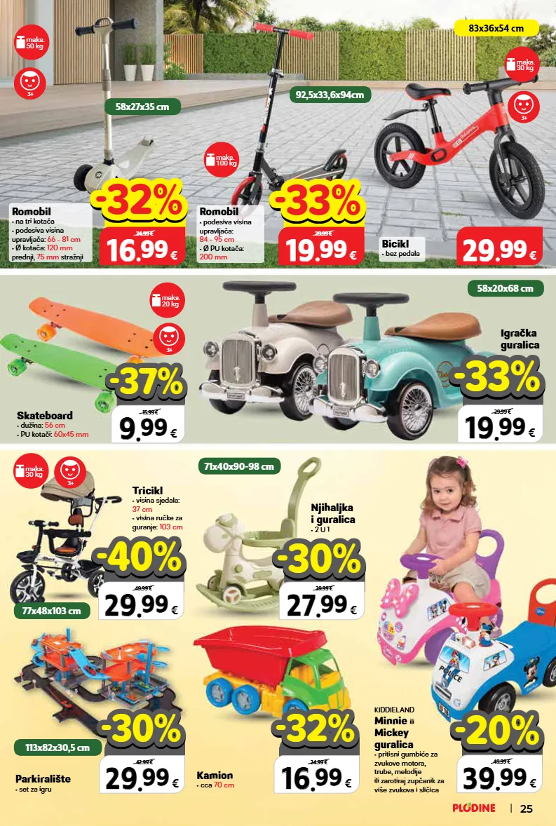 romobil • na tri kotača • podesiva visina upravljača: 66 - 81 cm • ø kotača: 120 mm prednji, 75 mm stražnji parkiralište • set za igru bicikl • bez pedala tricikl • visina sjedala: 37 cm • visina ručke za guranje: 103 cm romobil • podesiva visina upravljača: 84 - 95 cm • ø pu kotača: 200 mm igračka guralica kiddieland minnie ili mickey guralica • pritisni gumbiće za zvukove motora, trube, melodije ili zarotiraj zupčanik za više zvukova i sličica skateboard • dužina: 56 cm • pu kotači: 60x45 mm njihaljka i guralica • 2 u 1 kamion • cca 70 cm 3+ 3+ 3+ 3+ 29 29 . . 99 99 € top cijena! već od hit cijena! super prilika! 27 27 . . 99 99 € samo u plodinama 39.99 € -30% -30% top cijena! već od hit cijena! super prilika! 29 29 . . 99 99 € samo u plodinama 49.99 € -40% -40% top cijena! već od hit cijena! super prilika! 39 39 . . 99 99 € samo u plodinama 49.99 € -20% -20% top cijena! već od hit cijena! super prilika! 19 19 . . 99 99 € samo u plodinama 29.99 € -33% -33% top cijena! već od hit cijena! super prilika! 29 29 . . 99 99 € samo u plodinama 42.99 € -30% -30% top cijena! već od hit cijena! super prilika! 16 16 . . 99 99 € samo u plodinama 24.99 € -32% -32% top cijena! već od hit cijena! super prilika! 16 16 . . 99 99 € samo u plodinama 24.99 € -32% -32% top cijena! već od hit cijena! super prilika! 19 19 . . 99 99 € samo u plodinama 29.99 € -33% -33% 9 9 . . 99 99 € 15.99 € -37% -37% 58x20x68 cm 77x48x103 cm 92,5x33,6x94cm 58x27x35 cm 71x40x90-98 cm 83x36x54 cm maks. 30 kg maks. 50 kg maks. 100 kg maks. 20 kg maks. 30 kg 113x82x30,5 cm 25