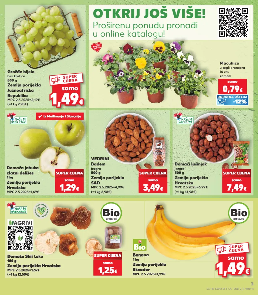 -12% -23% -31% 1,69 € 10,99 € kratkotrajna ponuda kratkotrajna ponuda kratkotrajna ponuda -26% kratkotrajna ponuda 1,69 € otkrij još više! proširenu ponudu pronađi u online katalogu! domaća jabuka zlatni delišes 1 kg zemlja porijekla hrvatska mpc 2.5.2025=1,69€ domaći lješnjak jezgra 500 g zemlja porijekla hrvatska mpc 2.5.2025=6,99€ (=1 kg 14,98€) super cijena vedrini badem jezgra 500 g zemlja porijekla sad mpc 2.5.2025=4,99€ (=1 kg 6,98€) super cijena super cijena domaće shii take 100 g zemlja porijekla hrvatska mpc 2.5.2025=1,69€ (=1 kg 12,50€) banana 1 kg zemlja porijekla ekvador mpc 2.5.2025=1,99€ (=1 kg 2,98€) grožđe bijelo bez koštica 500 g zemlja porijekla južnoafrička republika mpc 2.5.2025=2,19€ samo 1,29 € samo 3,49 € samo 7,49 € super cijena samo 1,25 € maćuhica u tegli promjera 10 cm komad samo 0,79 € -12% dodatna ušteda u online katalogu! maćuhica u tegli promjera 10 cm komad dodatna ušteda ✓ iz međimurja i slavonije 1,4 9 1,49 € € samo super cijena 1,4 9 1,49 € € samo super cijena s3-hr-kw12-lft-og_sub_2_r-1030-11 3