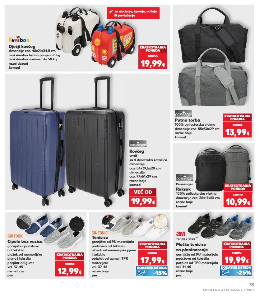 dječji kovčeg dimenzije cca. 48x21x34,5 cm maksimalna težina punjena 8 kg maksimalna nosivost do 50 kg razni dezeni komad putna torba 100% poliesterska vlakna dimenzije cca. 55x30x29 cm razne boje komad kratkotrajna ponuda muške tenisice za planinarenje gornjište od pu materijala podstava od tekstila potplat od tpr materijala vel. 41-45 razne boje par kratkotrajna ponuda kratkotrajna ponuda samo 19,99 € samo 13,99 € samo 19,99 € cipele bez vezica gornjište i podstava od tekstila uložak od memorijske pjene i tekstila potplat od gume vel. 37-45 razne boje par kratkotrajna ponuda samo 12,99 € kovčeg tvrdi sa 4 dvostruka kotačića dimenzije cca. 54x39,5x20 cm dimenzije cca. 77x51x29 cm razne boje komad passenger ruksak 100% poliesterska vlakna dimenzije cca. 35x17x53 cm razne boje komad kratkotrajna ponuda samo 10,99 € ✓ za sjedenje, igranje, vožnju ili povlačenje tenisice gornjište od pu materijala podstava od tekstila uložak od memorijske pjene i tekstila potplat od gume i tpr materijala vel. 37-45 razne boje par kratkotrajna ponuda samo 17,99 € već od 19,99 € -15% dodatna ušteda -25% dodatna ušteda s35-hr-kw12-lft-nf_gross_3_l-1030-11 35
