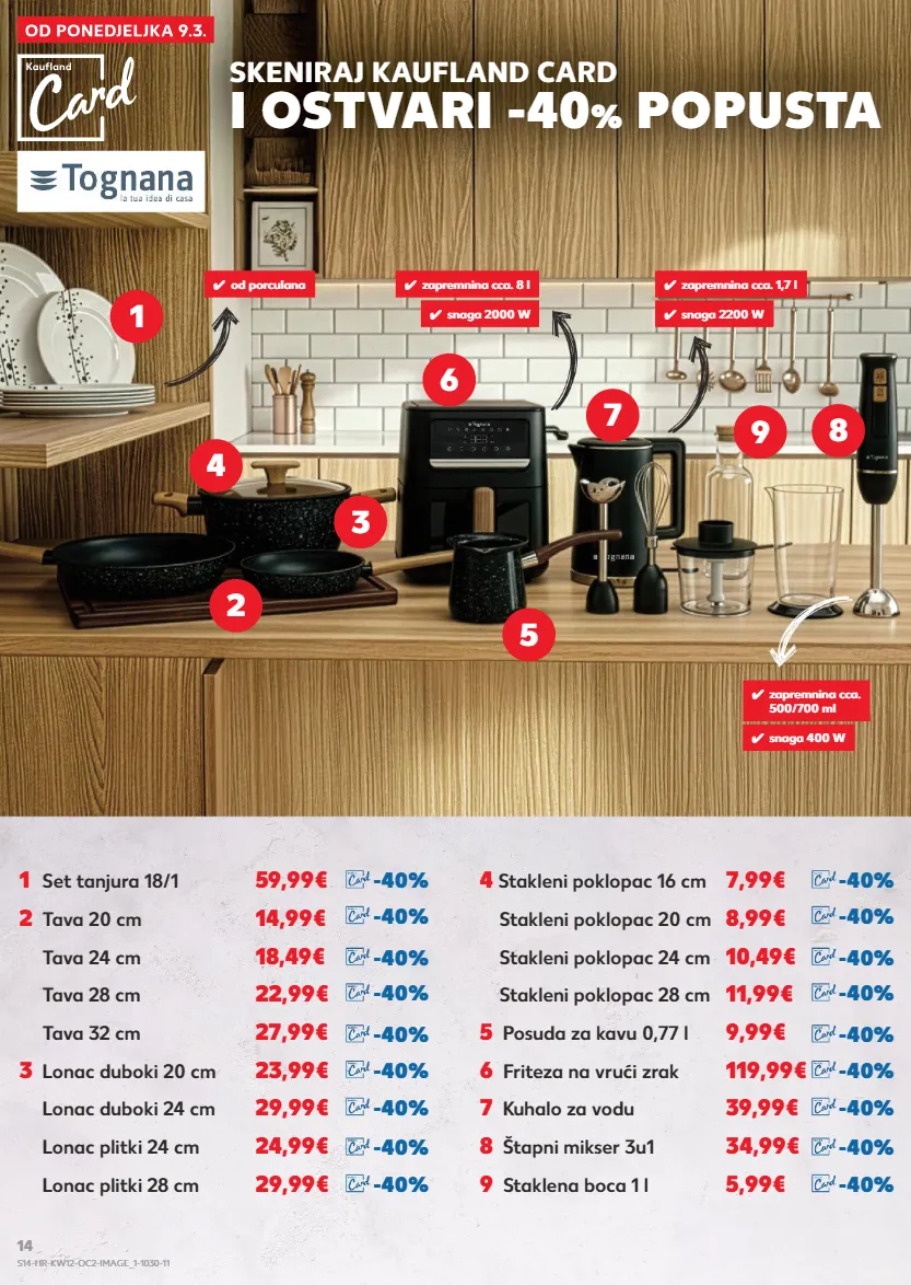 od ponedjeljka 9.3. 2 1 3 6 5 7 9 8 4 1 set tanjura 18/1 59,99€ 2 tava 20 cm 14,99€ tava 24 cm 18,49€ tava 28 cm 22,99€ tava 32 cm 27,99€ 3 lonac duboki 20 cm 23,99€ lonac duboki 24 cm 29,99€ lonac plitki 24 cm 24,99€ lonac plitki 28 cm 29,99€ 4 stakleni poklopac 16 cm 7,99€ stakleni poklopac 20 cm 8,99€ stakleni poklopac 24 cm 10,49€ stakleni poklopac 28 cm 11,99€ 5 posuda za kavu 0,77 l 9,99€ 6 friteza na vrući zrak 119,99€ 7 kuhalo za vodu 39,99€ 8 štapni mikser 3u1 34,99€ 9 staklena boca 1 l 5,99€ od ponedjeljka 9.3. skeniraj kaufland card i ostvari -40 % popusta -40% -40% -40% -40% -40% -40% -40% -40% -40% -40% -40% -40% -40% -40% -40% -40% -40% -40% ✓ zapremnina cca. 8 l ✓ od porculana ✓ zapremnina cca. 1,7 l ✓ zapremnina cca. 500/700 ml ✓ snaga 2000 w ✓ snaga 2200 w ✓ snaga 400 w s14-hr-kw12-oc2-image_1-1030-11 14