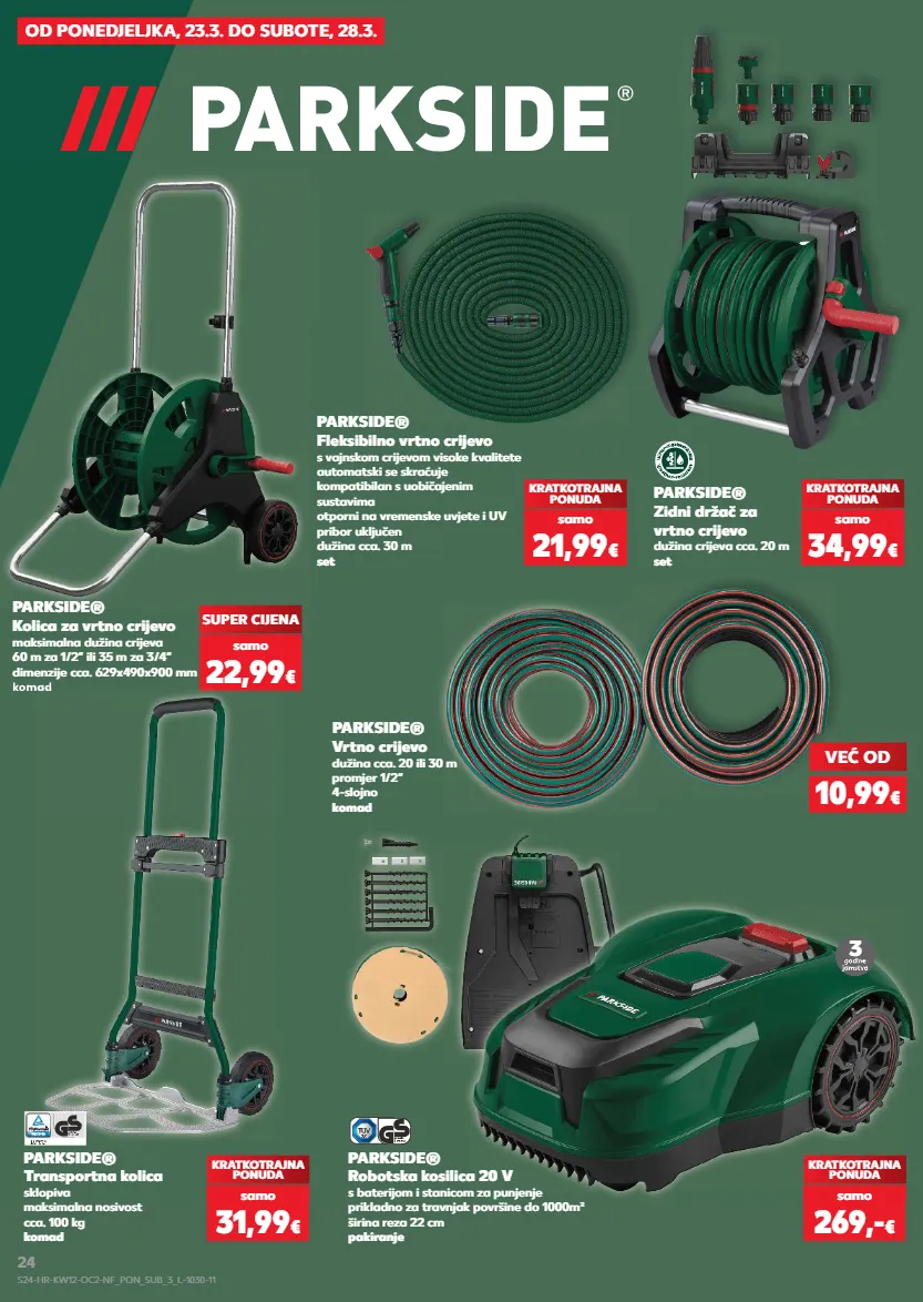 kratkotrajna ponuda od ponedjeljka, 23.3. do subote, 28.3. parkside® kolica za vrtno crijevo maksimalna dužina crijeva 60 m za 1/2“ ili 35 m za 3/4“ dimenzije cca. 629x490x900 mm komad parkside® vrtno crijevo dužina cca. 20 ili 30 m promjer 1/2“ 4-slojno komad parkside® robotska kosilica 20 v s baterijom i stanicom za punjenje prikladno za travnjak površine do 1000m² širina reza 22 cm pakiranje super cijena kratkotrajna ponuda samo 22,99 € samo 269,- € parkside® zidni držač za vrtno crijevo dužina crijeva cca. 20 m set kratkotrajna ponuda samo 34,99 € parkside® fleksibilno vrtno crijevo s vajnskom crijevom visoke kvalitete automatski se skraćuje kompatibilan s uobičajenim sustavima otporni na vremenske uvjete i uv pribor uključen dužina cca. 30 m set kratkotrajna ponuda samo 21,99 € 3 komad komad parkside® transportna kolica sklopiva maksimalna nosivost cca. 100 kg komad kratkotrajna ponuda samo 31,99 € već od 10,99 € s24-hr-kw12-oc2-nf_pon_sub_3_l-1030-11 24