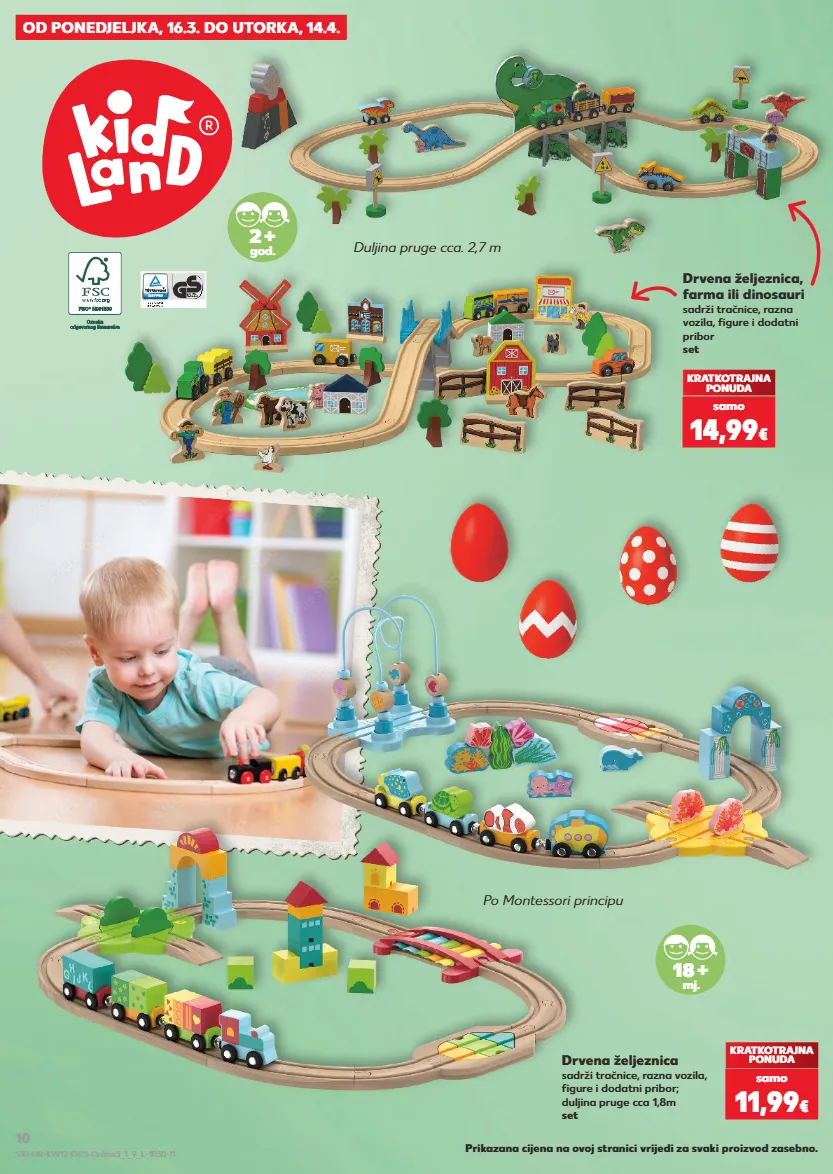 OD PONEDJELJKA, 16.3. DO UTORKA, 14.4. Drvena željeznica, farma ili dinosauri sadrži tračnice, razna vozila, figure i dodatni pribor set KRATKOTRAJNA PONUDA samo 14,99 € 2 + god. Duljina pruge cca. 2,7 m Drvena željeznica sadrži tračnice, razna vozila, figure i dodatni pribor; duljina pruge cca 1,8m set KRATKOTRAJNA PONUDA samo 11,99 € Po Montessori principu 18 + mj. Prikazana cijena na ovoj stranici vrijedi za svaki proizvod zasebno. S10-HR-KW12-OC3-Online3_1_9_L-1030-11 10
