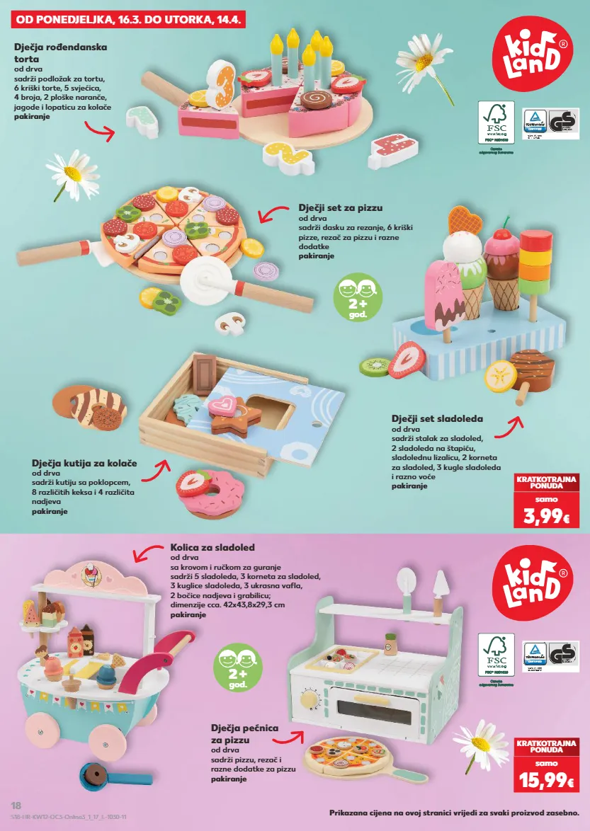 od ponedjeljka, 16.3. do utorka, 14.4. dječja rođendanska torta od drva sadrži podložak za tortu, 6 kriški torte, 5 svjećica, 4 broja, 2 ploške naranče, jagode i lopaticu za kolače pakiranje kolica za sladoled od drva sa krovom i ručkom za guranje sadrži 5 sladoleda, 3 korneta za sladoled, 3 kuglice sladoleda, 3 ukrasna vafla, 2 bočice nadjeva i grabilicu; dimenzije cca. 42x43,8x29,3 cm pakiranje dječja pećnica za pizzu od drva sadrži pizzu, rezač i razne dodatke za pizzu pakiranje dječji set sladoleda od drva sadrži stalak za sladoled, 2 sladoleda na štapiću, sladolednu lizalicu, 2 korneta za sladoled, 3 kugle sladoleda i razno voće pakiranje dječji set za pizzu od drva sadrži dasku za rezanje, 6 kriški pizze, rezač za pizzu i razne dodatke pakiranje dječja kutija za kolače od drva sadrži kutiju sa poklopcem, 8 različitih keksa i 4 različita nadjeva pakiranje 2 + god. 2 + god. kratkotrajna ponuda samo 3,99 € kratkotrajna ponuda samo 15,99 € prikazana cijena na ovoj stranici vrijedi za svaki proizvod zasebno. s18-hr-kw12-oc3-online3_1_17_l-1030-11 18