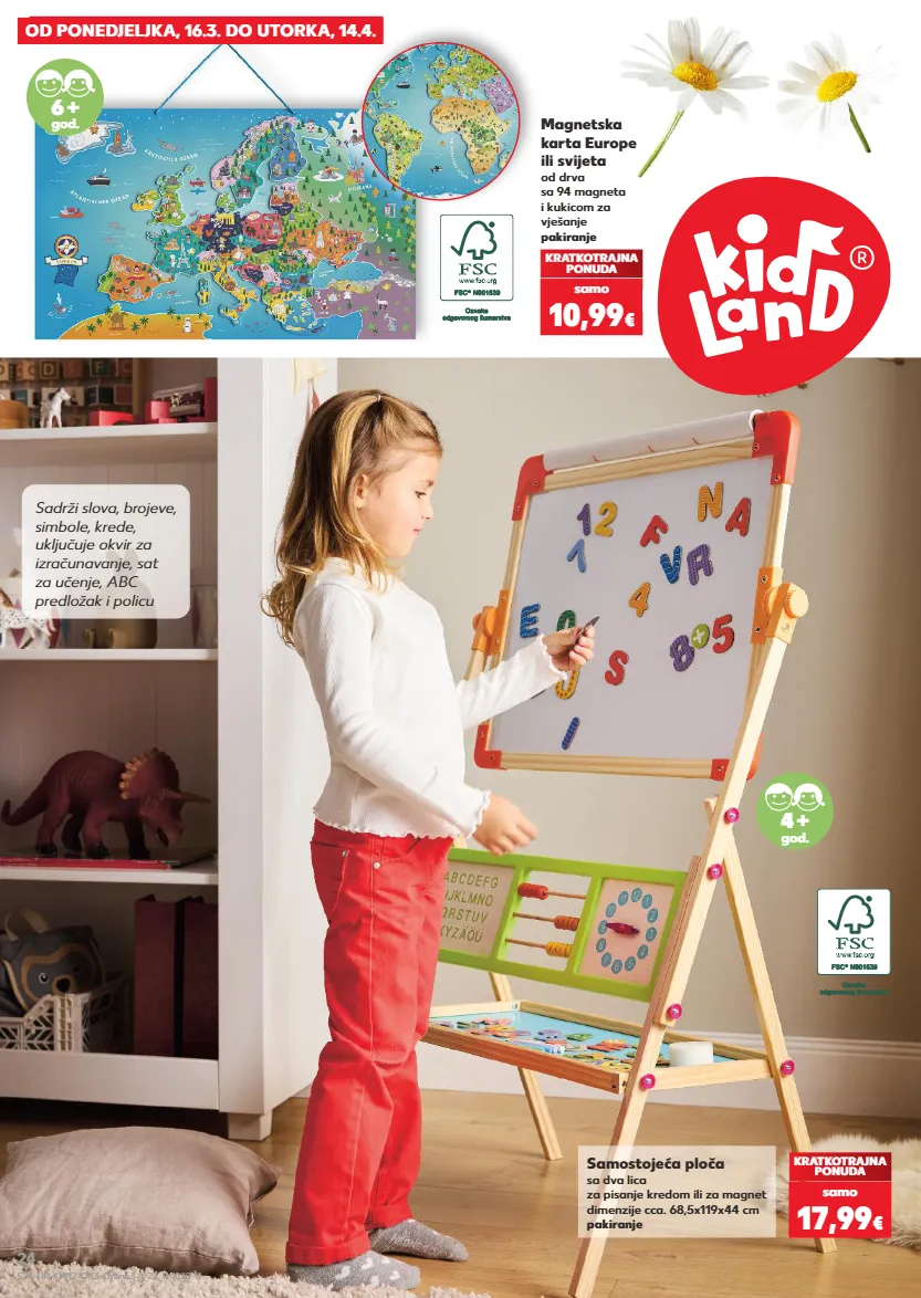 OD PONEDJELJKA, 16.3. DO UTORKA, 14.4. Magnetska karta Europe ili svijeta od drva sa 94 magneta i kukicom za vješanje pakiranje Samostojeća ploča sa dva lica za pisanje kredom ili za magnet dimenzije cca. 68,5x119x44 cm pakiranje KRATKOTRAJNA PONUDA samo 17,99 € 4 + god. 6 + god. Sadrži slova, brojeve, simbole, krede, uključuje okvir za izračunavanje, sat za učenje, ABC predložak i policu KRATKOTRAJNA PONUDA samo 10,99 € S24-HR-KW12-OC3-Online3_1_22_R-1030-11 24