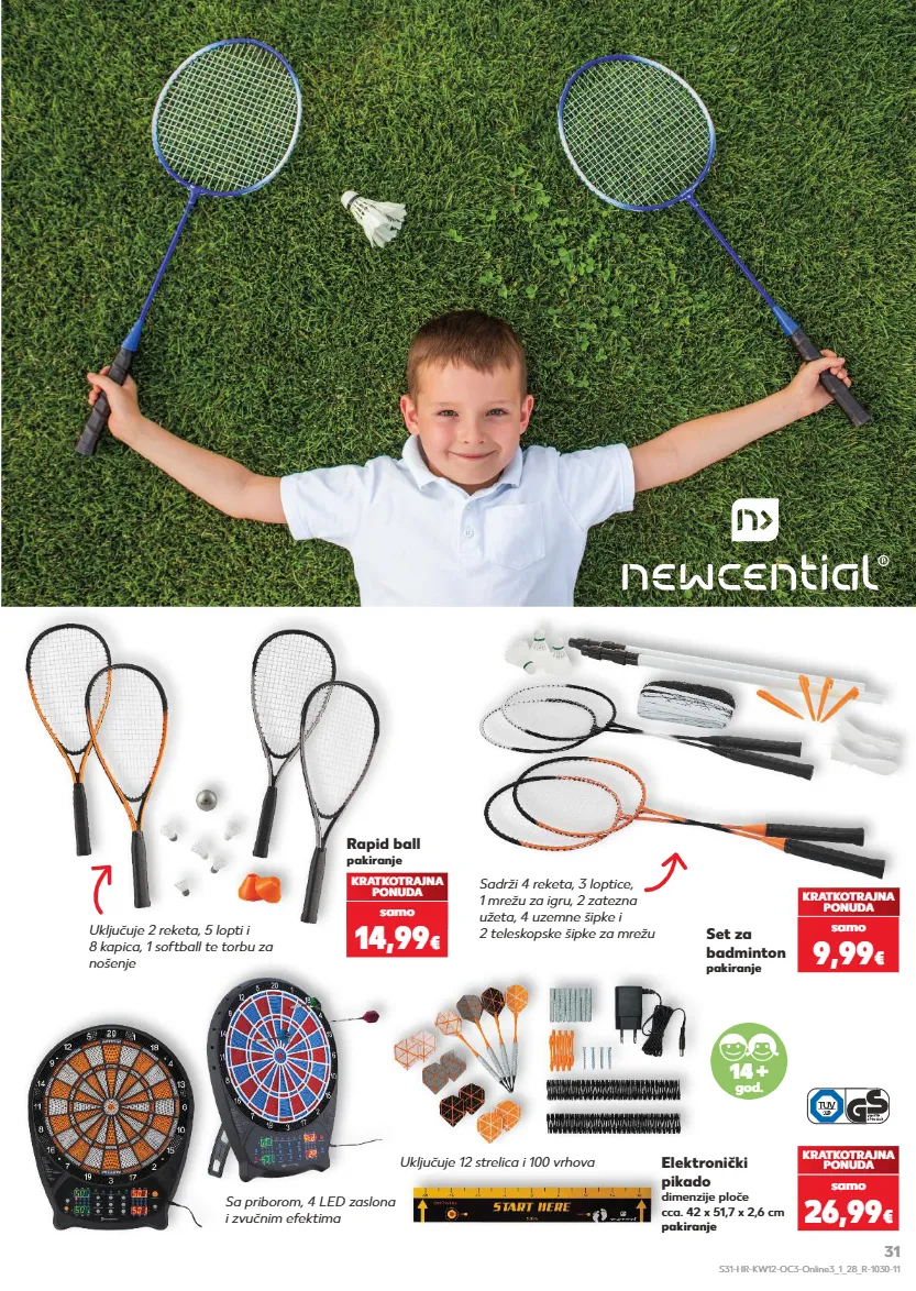 rapid ball pakiranje elektronički pikado dimenzije ploče cca. 42 x 51,7 x 2,6 cm pakiranje set za badminton pakiranje kratkotrajna ponuda samo 14,99 € kratkotrajna ponuda samo 26,99 € kratkotrajna ponuda samo 9,99 € uključuje 2 reketa, 5 lopti i 8 kapica, 1 softball te torbu za nošenje sa priborom, 4 led zaslona i zvučnim efektima uključuje 12 strelica i 100 vrhova sadrži 4 reketa, 3 loptice, 1 mrežu za igru, 2 zatezna užeta, 4 uzemne šipke i 2 teleskopske šipke za mrežu 14 + god. s31-hr-kw12-oc3-online3_1_28_r-1030-11 31