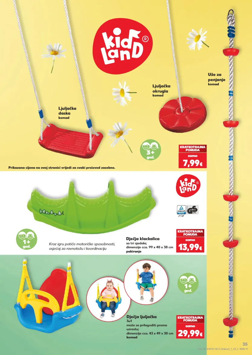 kratkotrajna ponuda samo 7,99 € kratkotrajna ponuda samo 13,99 € kratkotrajna ponuda samo 29,99 € ljuljačka daska komad ljuljačka okrugla komad uže za penjanje komad 3 + god. 1 + god. 1 + god. prikazana cijena na ovoj stranici vrijedi za svaki proizvod zasebno. dječja klackalica sa tri sjedala; dimenzije cca. 99 x 40 x 38 cm pakiranje dječja ljuljačka 3u1 može se prilagoditi prema uzrastu; dimenzije cca. 43 x 49 x 30 cm komad kroz igru potiče motoričke sposobnosti, osjećaj za ravnotežu i koordinaciju s35-hr-kw12-oc3-online3_1_33_l-1030-11 35