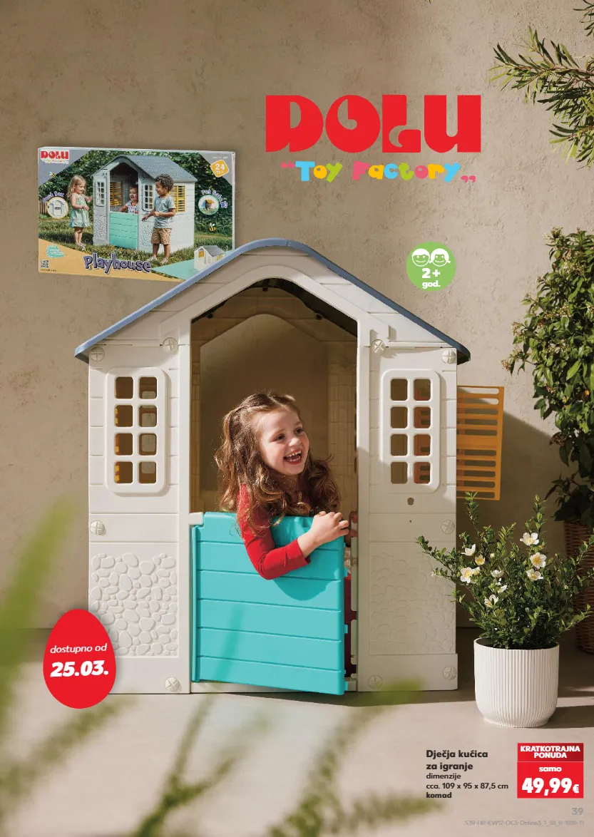 dostupno od 25.03. KRATKOTRAJNA PONUDA samo 49,99 € Dječja kućica za igranje dimenzije cca. 109 x 95 x 87,5 cm komad 2 + god. S39-HR-KW12-OC3-Online3_1_38_R-1030-11 39