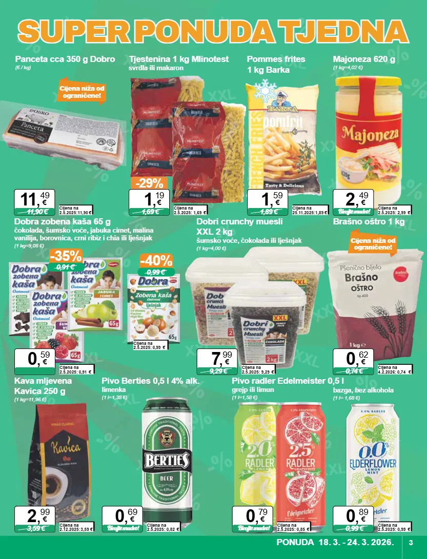 xxl xxl xxl xxl xxl xxl xxl xxl xxl xxl xxl xxl xxl xxl xxl xxl xxl xxl xxl xxl xxl xxl xxl xxl xxl xxl xxl xxl xxl xxl xxl xxl -% -% -% -% -% -% -% -% -% -% -% -% -% -% -% -% -% -% -% -% -% -% -% -% -% -% -% -% -% -% -% -% -% super ponuda tjedna super ponuda tjedna -35% 0,91 € -40% 0,99 € majoneza 620 g (1 kg=4,02 €) cijena na 2.5.2025: 2,99 € birajte mudro! 2 , 49 € cijena niža od ograničene! panceta cca 350 g dobro (€ / kg) cijena na 2.5.2025:11,90 € 11,90 € 11 , 49 € tjestenina 1 kg mlinotest svrdla ili makaron cijena na 2.5.2025: 1,69 € -29% 1,69 € 1 , 19 € pommes frites 1 kg barka cijena na 25.11.2025:1,89 € 1,89 € 1 , 59 € dobra zobena kaša 65 g čokolada, šumsko voće, jabuka cimet, malina vanilija, borovnica, crni ribiz i chia ili lješnjak (1 kg=9,08 €) cijena na 2.5.2025: 0,91 € 0 , 59 € cijena na 2.5.2025: 0,99 € dobri crunchy muesli xxl 2 kg šumsko voće, čokolada ili lješnjak (1 kg=4,00 €) cijena na 2.5.2025: 9,29 € 9,29 € 7 , 99 € cijena niža od ograničene! brašno oštro 1 kg cijena na 4.2.2026: 0,74 € 0,74 € 0 , 62 € kava mljevena kavica 250 g (1 kg=11,96 €) cijena na 2.12.2025: 3,59 € 3,59 € 2 , 99 € pivo berties 0,5 l 4% alk. limenka (1 l=1,38 €) cijena na 2.5.2025: 0,82 € birajte mudro! 0 , 69 € pivo radler edelmeister 0,5 l grejp ili limun (1 l=1,58 €) cijena na 2.5.2025: 0,85 € birajte mudro! 0 , 79 € bazga, bez alkohola (1 l= 1,68 €) cijena na 2.5.2025: 0,99 € 0,99 € 0 , 89 € ponuda 18. 3. - 24. 3. 2026. 3