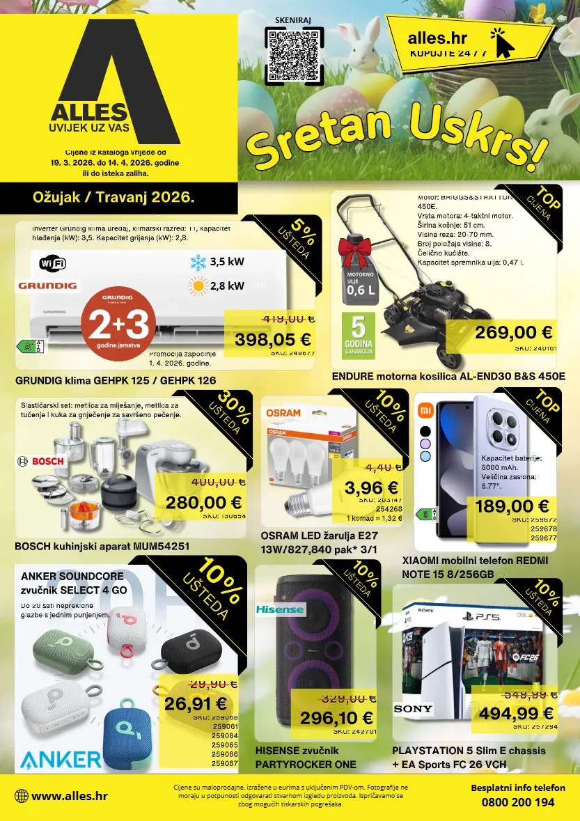 10 % ušteda 10 % ušteda 10 % ušteda 494 , 99 € 549 , 99 € sku : 257294 296 , 10 € 329 , 00 € sku : 242701 26 , 91 € 29 , 90 € sku : 259068 259061 259064 259065 259066 259067 30 % ušteda 400 , 00 € 280 , 00 € sku : 130654 10 % ušteda 4 , 40 € 3 , 96 € sku : 203147 254268 1 komad = 1 , 32 € 269 , 00 € sku : 240161 mo t o r : briggs & stratton 450 e . v rst a mo t o r a : 4 - t ak t ni mo t o r. ši r ina ko š nje : 51 cm . vi s ina r e z a : 20 - 70 mm . b r oj p olo ž aja v i s ine : 8. čelično k u ći št e . ka p aci t e t spr emnika u lja : 0 , 47 l . endure mo t o r na ko s ilica al - end 30 b & s 450 e 5 % ušteda 419 , 00 € 398 , 05 € sku : 249677 189 , 00 € sku : 259672 259678 259677 top cijena ++ ++ d a +++ alle s. h r kupujte 24 / 7 s r e t a n u s k r s ! s r e t a n u s k r s ! top cijena o žu jak / t r a v anj 2026. grundig klima gehpk 125 / gehpk 126 cijene i z ka t aloga vr ijede od 19. 3. 2026. do 14. 4. 2026. godine ili do i st eka z aliha . besplatni info telefon 0800 200 194 cijene su maloprodajne, izražene u eurima s uključenim pdv-om. fotografije ne moraju u potpunosti odgovarati stvarnom izgledu proizvoda. ispričavamo se zbog mogućih tiskarskih pogrešaka. www.alles.hr anker soundcore zvu čnik select 4 go hisense zvu čnik partyrocker one playstation 5 slim e cha ss i s + ea s p o rts fc 26 vch bosch k u hinj s ki a p a r a t mum 54251 osram led ž a ru lja e 27 13 w / 827 , 840 p ak * 3 / 1 in v e rt e r g ru ndig klima ur eđaj , klima ts ki r a zr ed : t 1 , ka p aci t e t hlađenja ( kw ): 3 , 5. ka p aci t e t g r ijanja ( kw ): 2 , 8. 3,5 kw 2,8 kw xiaomi mobilni t elefon redmi note 15 8 / 256 gb ka p aci t e t b a t e r ije : 6000 mah . veličina z a s lona : 6.77 " . p r omocija z a p očinje 1. 4. 2026. godine . skeniraj sla st iča rs ki s e t : me t lica z a mije š anje , m e t lica z a tu čenje i k u ka z a gnječenje z a s a vrš eno p ečenje . do 20 s a t i ne pr ekidne gla z be s jednim pu njenjem .
