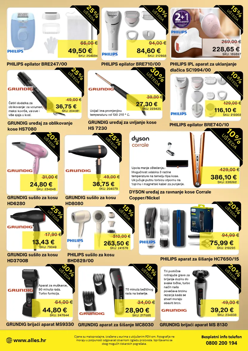 25 % UŠTEDA 66 , 00 € 49 , 50 € SKU : 254694 10 % UŠTEDA 94 , 00 € 84 , 60 € SKU : 212968 269 , 00 € 228 , 65 € SKU : 189897 15 % UŠTEDA 30 % UŠTEDA 64 , 00 € 44 , 80 € SKU : 247644 15 % UŠTEDA 34 , 00 € 28 , 90 € SKU : 217685 20 % UŠTEDA 31 , 00 € 24 , 80 € SKU : 234848 25 % UŠTEDA 17 , 90 € 13 , 43 € SKU : 79049 20 % UŠTEDA 49 , 00 € 39 , 20 € SKU : 234838 20 % UŠTEDA 94 , 99 € 75 , 99 € SKU : 219295 25 % UŠTEDA 49 , 00 € 36 , 75 € SKU : 204079 PHILIPS e p ila t o r BRE 247 / 00 25 % UŠTEDA 49 , 00 € 36 , 75 € SKU : 204081 PHILIPS e p ila t o r BRE 710 / 00 PHILIPS IPL a p a r a t z a u klanjanje dlačica SC 1994 / 00 30 % UŠTEDA 39 , 00 € 27 , 30 € SKU : 223425 GRUNDIG suš ilo z a ko su HD 8080 310 , 00 € 263 , 50 € SKU : 241576 15 % UŠTEDA 10 % UŠTEDA 429 , 00 € 386 , 10 € SKU : 238262 129 , 00 € 116 , 10 € SKU : 219302 10 % UŠTEDA GRUNDIG b r ijaći a p a r a t MS 9330 A p a r a t z a m uš ka r ce , 90 min ut a r ada . T ur bo f u nkcija . GRUNDIG a p a r a t z a š i š anje MC 8030 70 min ut a be ž ičnog r ada na ba t e r ije . GRUNDIG suš ilo z a ko su HD 6280 GRUNDIG suš ilo z a ko su HD 3700 B GRUNDIG b r ijaći a p a r a t MS 8130 T r i p omične r o t i r aj u će gla v e z a b r ijanje do p i ru do sv ake t očke , tur bo način r ada p o v eća v a b rz in u r e z anja kada s e stv a r i mo r aj u oba v i t i b rz o . PHILIPS a p a r a t z a š i š anje HC 7650 / 15 GRUNDIG ur eđaj z a obliko v anje ko s e HS 7080 GRUNDIG ur eđaj z a uv ijanje ko s e HS 7230 PHILIPS suš ilo z a ko su BHD 829 / 00 DYSON ur eđaj z a r a v nanje ko s e Co rr ale Co pp e r / Nickel U p ola manje o št ećenja . 1 Mog u ćno st odabi r a 3 r a z ine t em p e r a tur e na t emelj u t i p a ko s e . Uklj u č u je put n u t o r bic u o tp o r n u na t o p lin u i magne ts ki kabel z a pu njenje . PHILIPS e p ila t o r BRE 740 / 10 Besplatni info telefon 0800 200 194 Cijene su maloprodajne, izražene u eurima s uključenim PDV-om. Fotografije ne moraju u potpunosti odgovarati stvarnom izgledu proizvoda. Ispričavamo se zbog mogućih tiskarskih pogrešaka. www.alles.hr U v ijač ima pr omjenji vu t em p e r a turu od 130 - 210 ° C . Če t i r i doda t ka z a obliko v anje : z a v ol u men , mak s i ko vr če , v alo v e i v i š e s jaja u ko s i .