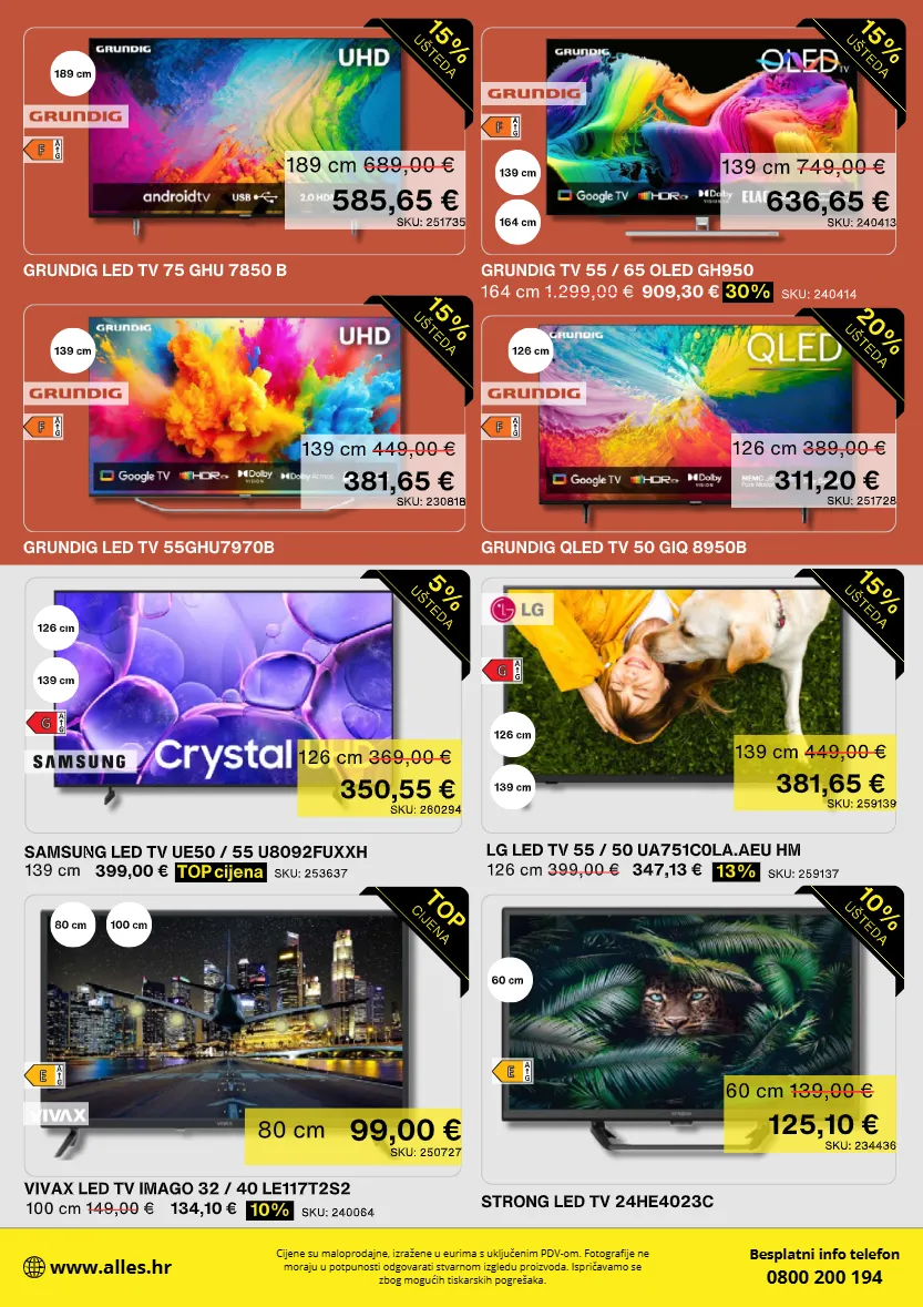 189 cm 15 % ušteda 189 cm 689 , 00 € 585 , 65 € sku : 251735 80 cm 100 cm top cijena 100 cm 149 , 00 € 134 , 10 € 10 % grundig led tv 75 ghu 7850 b 139 cm grundig tv 55 / 65 oled gh 950 15 % ušteda 139 cm 15 % ušteda 139 cm 449 , 00 € 381 , 65 € sku : 230818 grundig led tv 55 ghu 7970 b 126 cm grundig qled tv 50 giq 8950 b 20 % ušteda 164 cm 164 cm 1.299 , 00 € 909 , 30 € 30 % 139 cm 749 , 00 € 636 , 65 € sku : 240413 126 cm 389 , 00 € 311 , 20 € sku : 251728 60 cm 60 cm 139 , 00 € 125 , 10 € sku : 234436 10 % ušteda 139 cm 449 , 00 € 381 , 65 € sku : 259139 15 % ušteda 5 % ušteda 126 cm 139 cm 126 cm 369 , 00 € 350 , 55 € sku : 260294 139 cm 399 , 00 € top cijena besplatni info telefon 0800 200 194 cijene su maloprodajne, izražene u eurima s uključenim pdv-om. fotografije ne moraju u potpunosti odgovarati stvarnom izgledu proizvoda. ispričavamo se zbog mogućih tiskarskih pogrešaka. www.alles.hr vivax led tv imago 32 / 40 le 117 t 2 s 2 99 , 00 € sku : 250727 80 cm sku : 240064 sku : 240414 strong led tv 24 he 4023 c samsung led tv ue 50 / 55 u 8092 fuxxh lg led tv 55 / 50 ua 751 c 0 la . aeu hm sku : 253637 126 cm 139 cm 126 cm 399 , 00 € 347 , 13 € 13 % sku : 259137