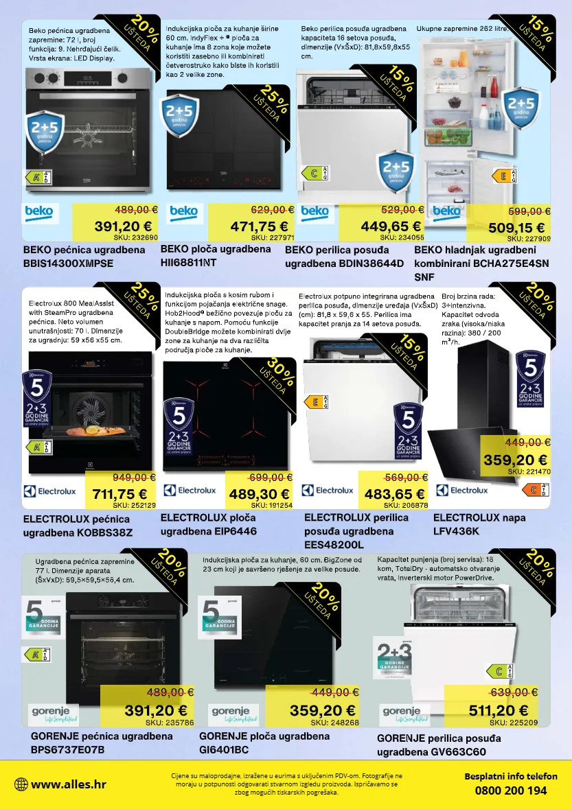 104 , 00 € 72 , 80 € SKU : 239457 239458 30 % UŠTEDA 25 % UŠTEDA 125 , 00 € 93 , 75 € SKU : 152004 BEKO mik r o v alna p ećnica MOC 20100 SFB 25 % UŠTEDA 429 , 00 € 321 , 75 € SKU : 234815 BOSCH m u l t i pr ak t ik MCM 3401 M BEKO a p a r a t z a ka vu CEG 7302 B 25 % UŠTEDA 139 , 00 € 104 , 25 € SKU : 228098 15 % UŠTEDA 269 , 00 € 228 , 65 € SKU : 216774 45 % UŠTEDA 56 , 50 € 31 , 08 € SKU : 238448 20 % UŠTEDA 389 , 00 € 311 , 20 € SKU : 259361 20 % UŠTEDA 169 , 00 € 135 , 20 € SKU : 259358 20 % UŠTEDA 79 , 00 € 63 , 20 € SKU : 258235 258236 20 % UŠTEDA 56 , 70 € 45 , 36 € SKU : 221278 221270 RITTER me s o r e z nica SECURA 9 ALPINA ind u kcij s ko k u halo 1 kolo 20 % UŠTEDA 179 , 90 € 143 , 92 € SKU : 230201 27 % UŠTEDA 679 , 00 € 495 , 67 € SKU : 213730 15 % UŠTEDA 129 , 99 € 110 , 49 € SKU : 108316 Po s l už i t e d v a e spr e ss a odjednom s d v o stru kim i z la z im a . BEKO mini p ećnica BMOH 30 B Za pr emin u od 25 l i 2 p loče z a k u hanje . O pr emljena je f u nkcijom t ime r a . GORENJE mik r o v alna p ećnica u g r adbena BMI 201 AG 1 X RITTER me s o r e z nica ARCUS 3 ZILAN p lin s ko k u halo ZLN 7079 BK ZILAN p lin s ko k u halo ZLN 0032 / WH ELECTROLUX a p a r a t z a ka vu E 6 EC 1 - 6 ST BOSCH a p a r a t z a ka vu TIS 30329 RW Idealna t em p e r a tur a z a pr i pr em u ka v e i pu na a r oma uz p omoć s i st ema Sen s oFlo w S yst em . GORENJE p ekač k ru ha BM 1600 WG Besplatni info telefon 0800 200 194 Cijene su maloprodajne, izražene u eurima s uključenim PDV-om. Fotografije ne moraju u potpunosti odgovarati stvarnom izgledu proizvoda. Ispričavamo se zbog mogućih tiskarskih pogrešaka. www.alles.hr Pode s i v a š i r ina r e z anja do 20 mm , d u ljina r e z anja cca . 18 cm . Pode s i v a š i r ina r e z anja do 23 mm , d u ljina r e z anja cca . 24 cm . P r omocija tr aje do 30. 3. 2026. Samo st ojeća mik r o v alna p ećnica mak s imalne s nage 700 W , z a pr emine 20 l . 5 r a z ina s nage . Pode s i v a t em p e r a tur a i t ime r - g r ijanje od 60 ° C do 220 ° C i p ode s i v o vr ijeme z ag r ija v anja . Plin s ko k u halo / r e š o s a 3 p lamen ika , g u mb z a kon tr ol u p lina . Mik r o v alna p ećnica s g r ilom , v ol u men p ećn ice : 20 l . B r oj r a z ina s nage : 5. Plin s ki r e š o s a 4 p lamenika . Emajli r ano t ijelo i p oklo p ac p lamen ika . Za ko r i št enje LPG - a .