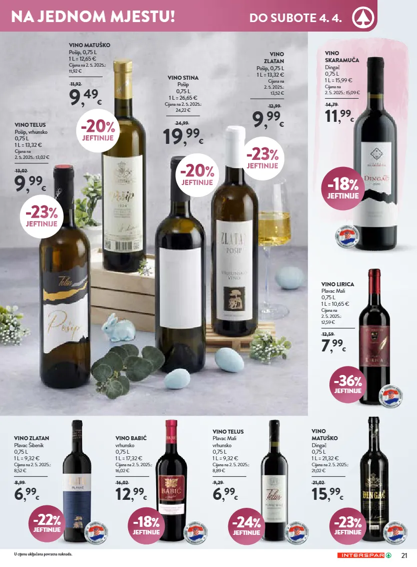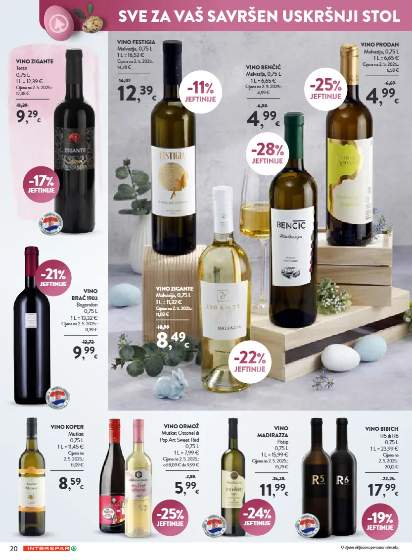 sretan uskrs! odaberite najfinije delicije za vaš savršen uskršnji stol! odaberite najfinije delicije za vaš savršen uskršnji stol! -36 % jeftinije -19 % jeftinije sir žigljen gligora, tvrdi ovčji/kravlji, 1 kg cijena na 2. 5. 2025.: 28,99 € 18 , 99 € 29,99 praška šunka gavrilović, 1 kg cijena na 2. 5. 2025.: 10,99 € 12 , 99 € 16,19 -26 % jeftinije vino madirazza m-dingač 0,75 l 1 l = 14,65 € cijena na 2. 5. 2025.: 13,99 € 10 , 99 € 14,99 u cijenu uključena povratna naknada ponuda kataloga vrijedi od četvrtka 19. 3. do subote 4. 4. 2026. skeniraj za online katalog