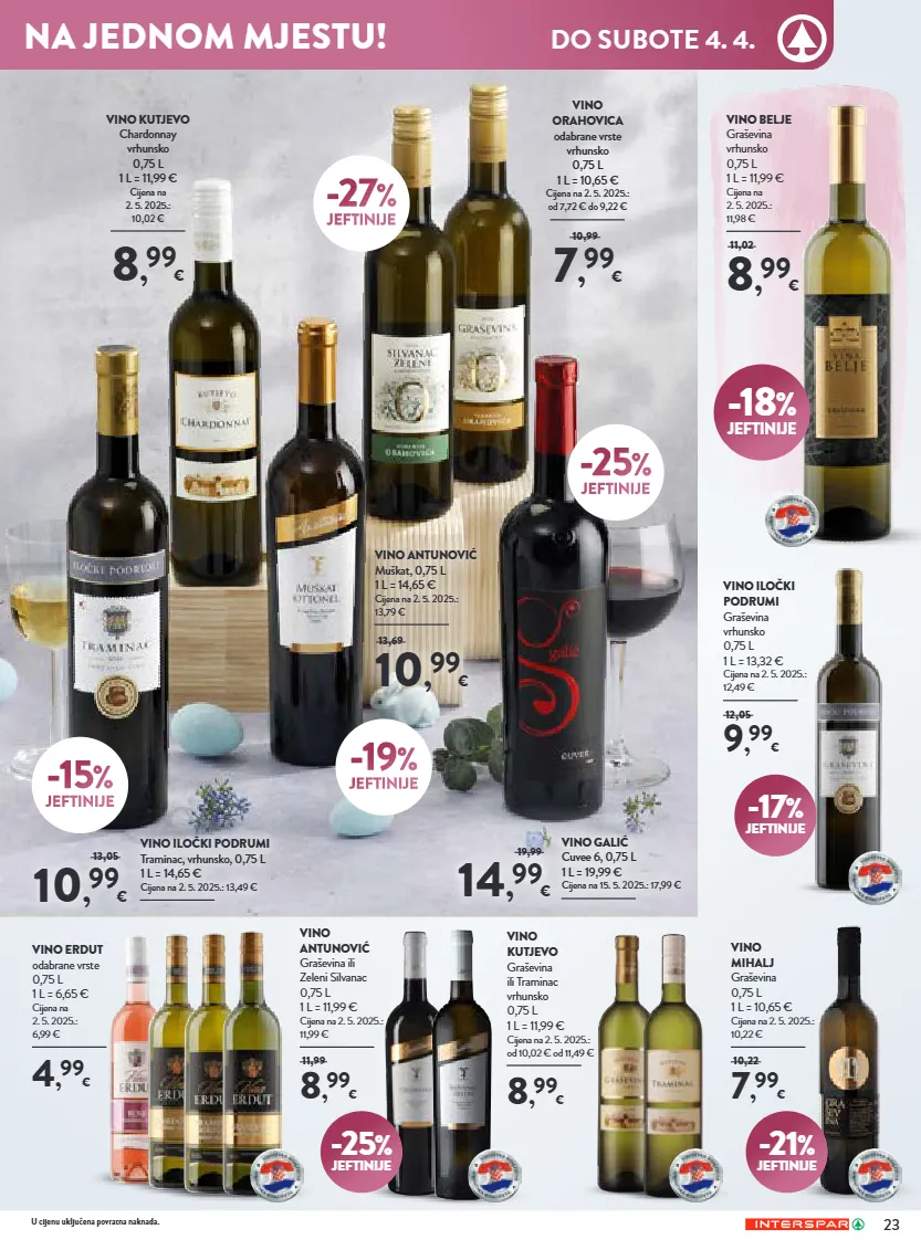 23 -21 % jeftinije vino mihalj graševina 0,75 l 1 l = 10,65 € cijena na 2. 5. 2025.: 10,22 € 7 , 99 € 10,22 -17 % jeftinije vino iločki podrumi graševina vrhunsko 0,75 l 1 l = 13,32 € cijena na 2. 5. 2025.: 12,49 € 9 , 99 € 12,05 -25 % jeftinije vino antunović graševina ili zeleni silvanac 0,75 l 1 l = 11,99 € cijena na 2. 5. 2025.: 11,99 € 8 , 99 € 11,99 vino erdut odabrane vrste 0,75 l 1 l = 6,65 € cijena na 2. 5. 2025.: 6,99 € 4 , 99 € 8 , 99 € vino kutjevo graševina ili traminac vrhunsko 0,75 l 1 l = 11,99 € cijena na 2. 5. 2025.: od 10,02 € od 11,49 € vino belje graševina vrhunsko 0,75 l 1 l = 11,99 € cijena na 2. 5. 2025.: 11,98 € 8 , 99 € 11,02 -18 % jeftinije vino iločki podrumi traminac, vrhunsko, 0,75 l 1 l = 14,65 € cijena na 2. 5. 2025.: 13,49 € 10 , 99 € 13,05 -15 % jeftinije vino kutjevo chardonnay vrhunsko 0,75 l 1 l = 11,99 € cijena na 2. 5. 2025.: 10,02 € 8 , 99 € vino orahovica odabrane vrste vrhunsko 0,75 l 1 l = 10,65 € cijena na 2. 5. 2025.: od 7,72 € do 9,22 € 7 , 99 € 10,99 -27 % jeftinije vino galić cuvee 6, 0,75 l 1 l = 19,99 € cijena na 15. 5. 2025.: 17,99 € 14 , 99 € 19,99 -25 % jeftinije vino antunović muškat, 0,75 l 1 l = 14,65 € cijena na 2. 5. 2025.: 13,79 € 10 , 99 € 13,69 -19 % jeftinije u cijenu uključena povratna naknada. na jednom mjestu! do subote 4. 4.