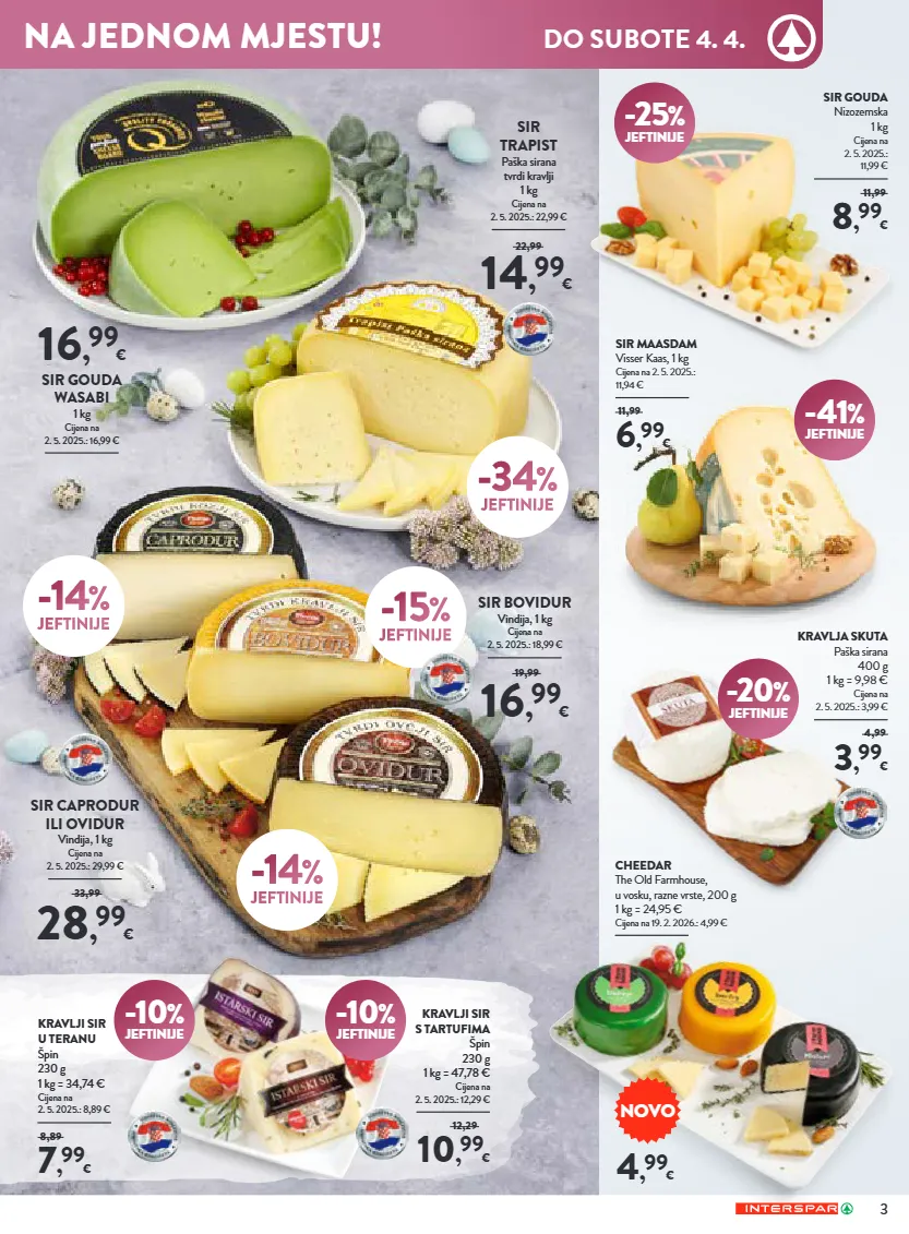7 , 99 € kravlji sir u teranu špin 230 g 1 kg = 34,74 € cijena na 2. 5. 2025.: 8,89 € 8,89 novo 6 , 99 € sir maasdam visser kaas, 1 kg cijena na 2. 5. 2025.: 11,94 € 11,99 4 , 99 € cheedar the old farmhouse, u vosku, razne vrste, 200 g 1 kg = 24,95 € cijena na 19. 2. 2026.: 4,99 € 8 , 99 € sir gouda nizozemska 1 kg cijena na 2. 5. 2025.: 11,99 € 11,99 3 , 99 € kravlja skuta paška sirana 400 g 1 kg = 9,98 € cijena na 2. 5. 2025.: 3,99 € 4,99 -20 % jeftinije -41 % jeftinije -25 % jeftinije 10 , 99 € kravlji sir s tartufima špin 230 g 1 kg = 47,78 € cijena na 2. 5. 2025.: 12,29 € 12,29 -10 % jeftinije -10 % jeftinije sir gouda wasabi 1 kg cijena na 2. 5. 2025.: 16,99 € 16 , 99 € sir bovidur vindija, 1 kg cijena na 2. 5. 2025.: 18,99 € sir caprodur ili ovidur vindija, 1 kg cijena na 2. 5. 2025.: 29,99 € sir trapist paška sirana tvrdi kravlji 1 kg cijena na 2. 5. 2025.: 22,99 € 14 , 99 € 22,99 16 , 99 € 19,99 -34 % jeftinije -15 % jeftinije -14 % jeftinije -14 % jeftinije 28 , 99 € 33,99 3 na jednom mjestu! do subote 4. 4.