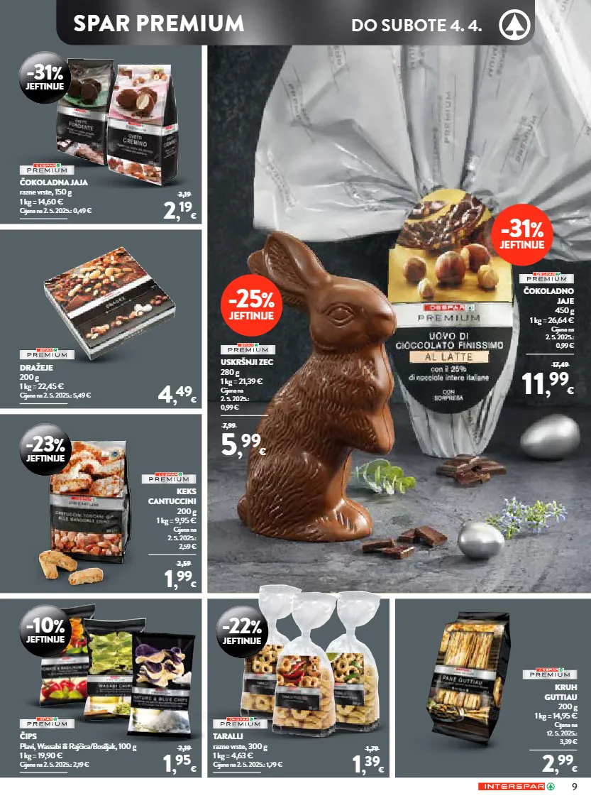 9 1 , 95 € 2,19 spar premium do subote 4. 4. -22 % jeftinije taralli razne vrste, 300 g 1 kg = 4,63 € cijena na 2. 5. 2025.: 1,79 € 1 , 39 € 1,79 čips plavi, wassabi ili rajčica/bosiljak, 100 g 1 kg = 19,90 € cijena na 2. 5. 2025.: 2,19 € -23 % jeftinije keks cantuccini 200 g 1 kg = 9,95 € cijena na 2. 5. 2025.: 2,59 € 1 , 99 € 2,59 -10 % jeftinije 4 , 49 € -31 % jeftinije čokoladna jaja razne vrste, 150 g 1 kg = 14,60 € cijena na 2. 5. 2025.: 0,49 € 2 , 19 € 3,19 uskršnji zec 280 g 1 kg = 21,39 € cijena na 2. 5. 2025.: 0,99 € 5 , 99 € 7,99 čokoladno jaje 450 g 1 kg = 26,64 € cijena na 2. 5. 2025.: 0,99 € 11 , 99 € 17,49 dražeje 200 g 1 kg = 22,45 € cijena na 2. 5. 2025.: 5,49 € kruh guttiau 200 g 1 kg = 14,95 € cijena na 12. 5. 2025.: 3,39 € 2 , 99 € -25 % jeftinije -31 % jeftinije