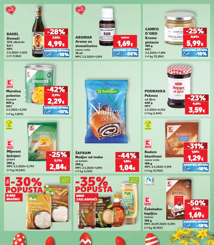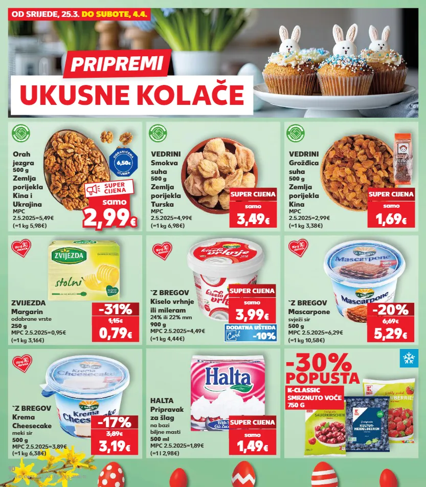 -30% 4,99 € kratkotrajna ponuda kratkotrajna ponuda kratkotrajna ponuda samo samo samo kratkotrajna ponuda kratkotrajna ponuda kratkotrajna ponuda kratkotrajna ponuda samo samo samo od srijede, 25.3. do subote, 4.4. `z bregov mascarpone svježi sir 500 g mpc 2.5.2025=6,29€ (=1 kg 10,58€) `z bregov krema cheesecake meki sir 500 g mpc 2.5.2025=3,89€ (=1 kg 6,38€) halta pripravak za šlag na bazi biljne masti 500 ml mpc 2.5.2025=1,89€ (=1 l 2,98€) -17% -20% super cijena 3,19 € 3,89 € 5,29 € 6,69 € 1,49 € zvijezda margarin odabrane vrste 250 g mpc 2.5.2025=0,95€ (=1 kg 3,16€) `z bregov kiselo vrhnje ili mileram 24% ili 22% mm 900 g mpc 2.5.2025=4,49€ (=1 kg 4,44€) -31% super cijena k a u f l a n d k v a l i t e t a o b e ć a n j e s v j e ž i n e super cijena (=1 kg 3,38€) vedrini grožđica suha 500 g zemlja porijekla kina mpc 2.5.2025=2,99€ k a u f l a n d k v a l i t e t a o b e ć a n j e s v j e ž i n e k a u f l a n d k v a l i t e t a o b e ć a n j e s v j e ž i n e (=1 kg 5,98€) orah jezgra 500 g zemlja porijekla kina i ukrajina mpc 2.5.2025=5,49€ 0,79 € 1,15 € 3,99 € 1,69 € samo 3,49 € (=1 kg 6,98€) vedrini smokva suha 500 g zemlja porijekla turska mpc 2.5.2025=4,99€ k-classic smrznuto voće 750 g -30% popusta samo samo -10% dodatna ušteda samo super cijena 6,50 € ukusne kolače ukusne kolače pripremi 2,99 2,99 € € samo super cijena s10-hr-kw13-lft-aktf1_5_1_l-1030-11 10