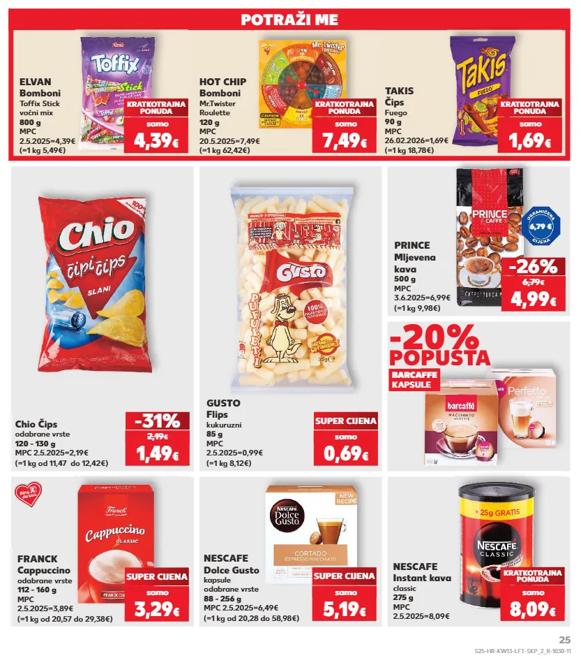 -26% 0,94 € kratkotrajna ponuda kratkotrajna ponuda kratkotrajna ponuda kratkotrajna ponuda kratkotrajna ponuda kratkotrajna ponuda super cijena samo samo samo samo samo samo samo samo potraži me chio čips odabrane vrste 120 - 130 g mpc 2.5.2025=2,19€ (=1 kg od 11,47 do 12,42€) -31% gusto flips kukuruzni 85 g mpc 2.5.2025=0,99€ (=1 kg 8,12€) prince mljevena kava 500 g mpc 3.6.2025=6,99€ (=1 kg 9,98€) franck cappuccino odabrane vrste 112 - 160 g mpc 2.5.2025=3,89€ (=1 kg od 20,57 do 29,38€) -26% super cijena nescafe dolce gusto kapsule odabrane vrste 88 - 256 g mpc 2.5.2025=6,49€ (=1 kg od 20,28 do 58,98€) nescafe instant kava classic 275 g mpc 2.5.2025=8,09€ super cijena kratkotrajna ponuda (=1 kg 62,42€) hot chip bomboni mr.twister roulette 120 g mpc 20.5.2025=7,49€ kratkotrajna ponuda (=1 kg 5,49€) elvan bomboni toffix stick voćni mix 800 g mpc 2.5.2025=4,39€ kratkotrajna ponuda (=1 kg 18,78€) takis čips fuego 90 g mpc 26.02.2026=1,69€ 1,49 € 2,19 € samo 0,69 € 4,99 € 6,79 € 3,29 € 5,19 € 8,09 € 7,49 € 4,39 € 1,69 € 6,79 € barcaffe kapsule -20% popusta samo samo samo samo samo samo kratkotrajna ponuda super cijena s25-hr-kw13-lft-skp_2_r-1030-11 25