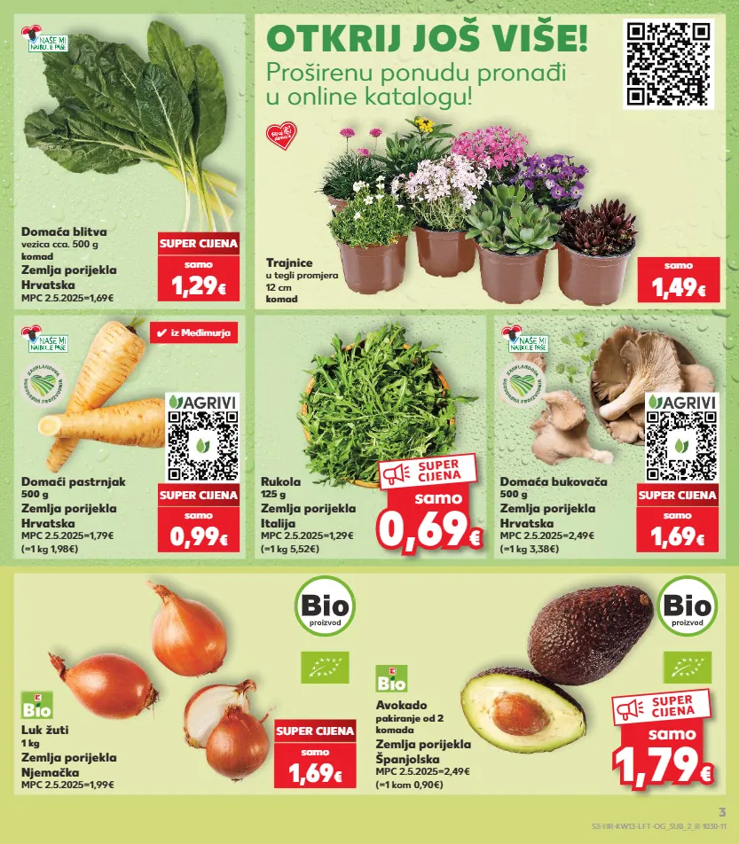 -15% kratkotrajna ponuda -44% -32% -35% 1,79 € 2,49 € 1,99 € 1,99 € kratkotrajna ponuda kratkotrajna ponuda kratkotrajna ponuda otkrij još više! proširenu ponudu pronađi u online katalogu! super cijena domaći pastrnjak 500 g zemlja porijekla hrvatska mpc 2.5.2025=1,79€ (=1 kg 1,98€) domaća bukovača 500 g zemlja porijekla hrvatska mpc 2.5.2025=2,49€ (=1 kg 3,38€) super cijena rukola 125 g zemlja porijekla italija mpc 2.5.2025=1,29€ (=1 kg 5,52€) super cijena luk žuti 1 kg zemlja porijekla njemačka mpc 2.5.2025=1,99€ avokado pakiranje od 2 komada zemlja porijekla španjolska mpc 2.5.2025=2,49€ (=1 kom 0,90€) domaća blitva vezica cca. 500 g komad zemlja porijekla hrvatska mpc 2.5.2025=1,69€ super cijena trajnice u tegli promjera 12 cm komad samo 0,99 € samo 1,69 € samo 1,69 € samo 1,29 € samo 1,49 € 0,6 9 0,69 € € samo super cijena 1,7 9 1,79 € € samo super cijena ✓ iz međimurja s3-hr-kw13-lft-og_sub_2_r-1030-11 3
