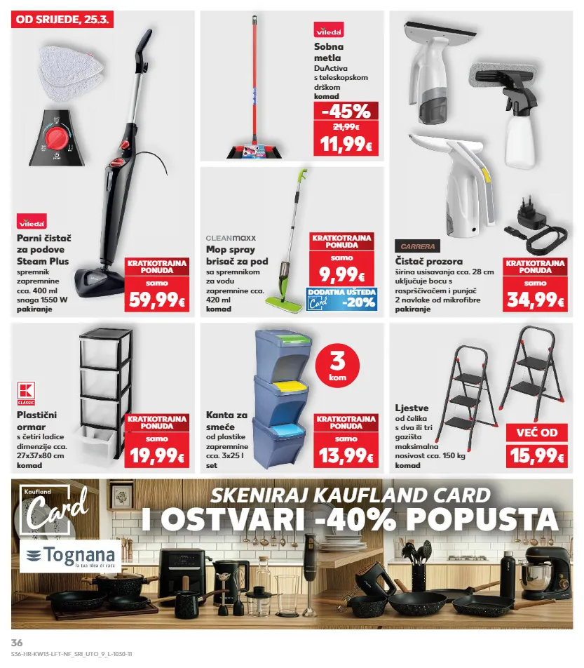 kratkotrajna ponuda od srijede, 25.3. 3 kom već od 15,99 € parni čistač za podove steam plus spremnik zapremnine cca. 400 ml snaga 1550 w pakiranje mop spray brisač za pod sa spremnikom za vodu zapremnine cca. 420 ml komad čistač prozora širina usisavanja cca. 28 cm uključuje bocu s rasprščivačem i punjač 2 navlake od mikrofibre pakiranje plastični ormar s četiri ladice dimenzije cca. 27x37x80 cm komad ljestve od čelika s dva ili tri gazišta maksimalna nosivost cca. 150 kg komad kanta za smeće od plastike zapremnine cca. 3x25 l set kratkotrajna ponuda kratkotrajna ponuda kratkotrajna ponuda kratkotrajna ponuda kratkotrajna ponuda samo 59,99 € samo 9,99 € samo 34,99 € samo 13,99 € samo 19,99 € sobna metla duactiva s teleskopskom drškom komad -45% 11,99 € 21,99 € -20% dodatna ušteda skeniraj kaufland card i ostvari -40% popusta s36-hr-kw13-lft-nf_sri_uto_9_l-1030-11 36