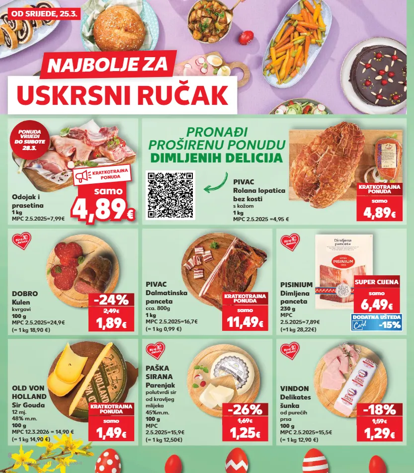 kratkotrajna ponuda kratkotrajna ponuda kratkotrajna ponuda samo samo samo kratkotrajna ponuda ponuda vrijedi do subote 28.3. od srijede, 25.3. paška sirana parenjak polutvrdi sir od kravljeg mlijeka 45%m.m. 100 g mpc 2.5.2025=15,9€ (= 1 kg 12,50€) vindon delikates šunka od purećih prsa 100 g mpc 2.5.2025=15,5€ (= 1 kg 12,90 €) odojak i prasetina 1 kg mpc 2.5.2025=7,99€ pivac rolana lopatica bez kosti s kožom 1 kg mpc 2.5.2025 =4,95 € -26% -18% kratkotrajna ponuda kratkotrajna ponuda (= 1 kg 0,99 €) pivac dalmatinska panceta cca. 800g 1 kg mpc 2.5.2025=16,7€ dobro kulen kvrgavi 100 g mpc 2.5.2025=24,9€ (= 1 kg 18,90 €) -24% 1,89 € 2,49 € 1,25 € 1,69 € 1,29 € 1,59 € old von holland sir gouda 12 mj. 48% m.m. 100 g mpc 12.3.2026 = 14,90 € (= 1 kg 14,90 €) kratkotrajna ponuda samo 4,89 € samo 1,49 € samo 11,49 € (=1 kg 28,22€) pisinium dimljena panceta 230 g mpc 2.5.2025=7,89€ samo 6,49 € super cijena -15% dodatna ušteda pronađi proširenu ponudu dimljenih delicija uskrsni ručak uskrsni ručak najbolje za 4,8 9 4,89 € € samo kratkotrajna ponuda s8-hr-kw13-lft-aktf1_4_1_l-1030-11 8
