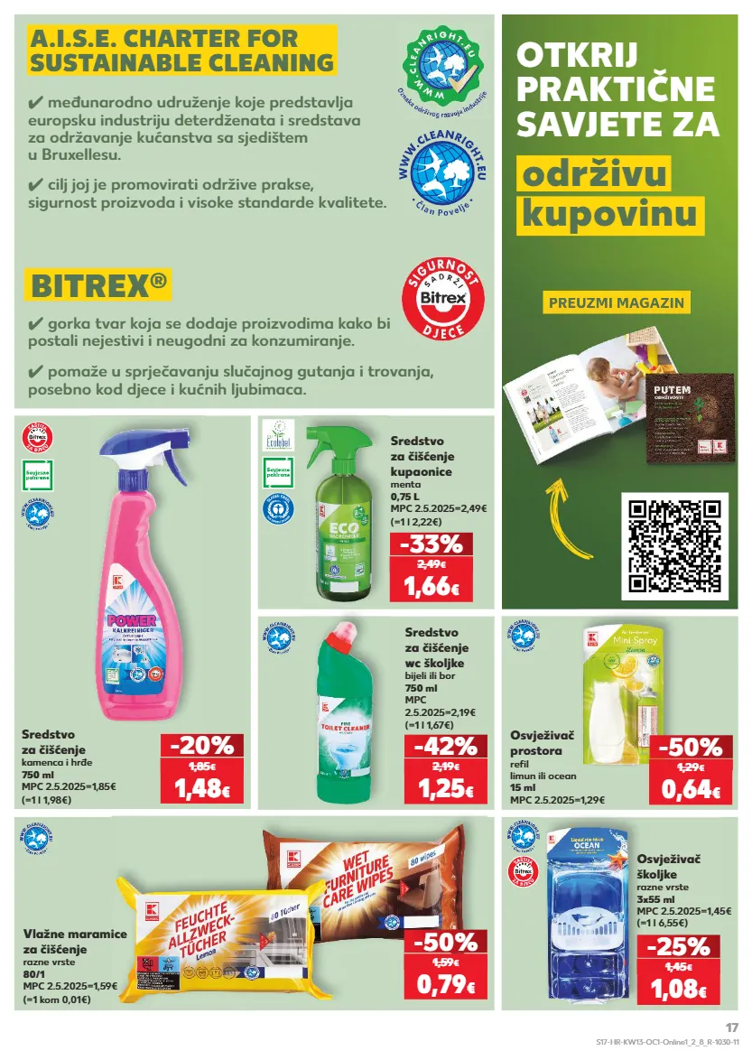 kratkotrajna ponuda kratkotrajna ponuda kratkotrajna ponuda kratkotrajna ponuda kratkotrajna ponuda kratkotrajna ponuda samo samo samo samo samo samo otkrij praktične savjete za održivu kupovinu a.i.s.e. charter for sustainable cleaning bitrex ® preuzmi magazin osvježivač prostora refil limun ili ocean 15 ml mpc 2.5.2025=1,29€ sredstvo za čišćenje kamenca i hrđe 750 ml mpc 2.5.2025=1,85€ (=1 l 1,98€) -20% -50% sredstvo za čišćenje wc školjke bijeli ili bor 750 ml mpc 2.5.2025=2,19€ (=1 l 1,67€) -42% vlažne maramice za čišćenje razne vrste 80/1 mpc 2.5.2025=1,59€ (=1 kom 0,01€) sredstvo za čišćenje kupaonice menta 0,75 l mpc 2.5.2025=2,49€ (=1 l 2,22€) -50% -33% (=1 l 6,55€) osvježivač školjke razne vrste 3x55 ml mpc 2.5.2025=1,45€ -25% 1,48 € 1,85 € 0,64 € 1,29 € 1,25 € 2,19 € 0,79 € 1,59 € 1,66 € 2,49 € 1,08 € 1,45 € preuzmi magazin ✓ međunarodno udruženje koje predstavlja europsku industriju deterdženata i sredstava za održavanje kućanstva sa sjedištem u bruxellesu. ✓ cilj joj je promovirati održive prakse, sigurnost proizvoda i visoke standarde kvalitete. ✓ gorka tvar koja se dodaje proizvodima kako bi postali nejestivi i neugodni za konzumiranje. ✓ pomaže u sprječavanju slučajnog gutanja i trovanja, posebno kod djece i kućnih ljubimaca. s17-hr-kw13-oc1-online1_2_8_r-1030-11 17