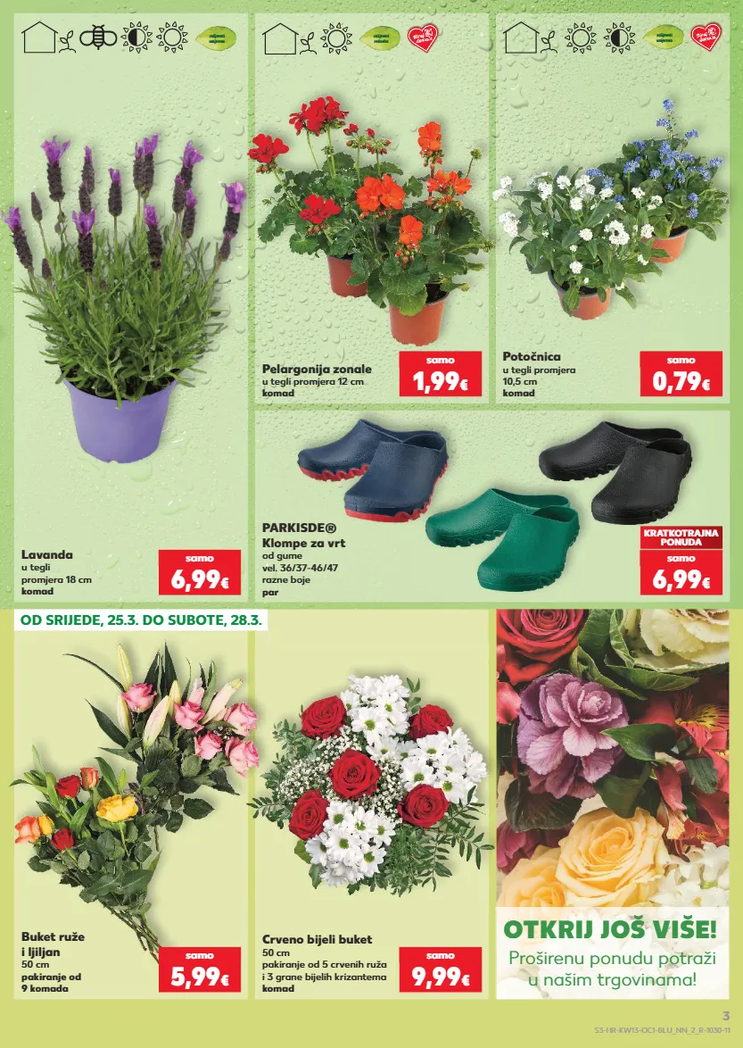 samo samo samo samo samo samo od srijede, 25.3. do subote, 28.3. otkrij još više! proširenu ponudu potraži u našim trgovinama! pelargonija zonale u tegli promjera 12 cm komad zalijevati redovito 1,99 € samo potočnica u tegli promjera 10,5 cm komad zalijevati umjereno 0,79 € samo zalijevati umjereno lavanda u tegli promjera 18 cm komad 6,99 € samo buket ruže i ljiljan 50 cm pakiranje od 9 komada 5,99 € samo crveno bijeli buket 50 cm pakiranje od 5 crvenih ruža i 3 grane bijelih krizantema komad 9,99 € samo parkisde® klompe za vrt od gume vel. 36/37-46/47 razne boje par kratkotrajna ponuda 6,99 € samo s3-hr-kw13-oc1-blu_nn_2_r-1030-11 3