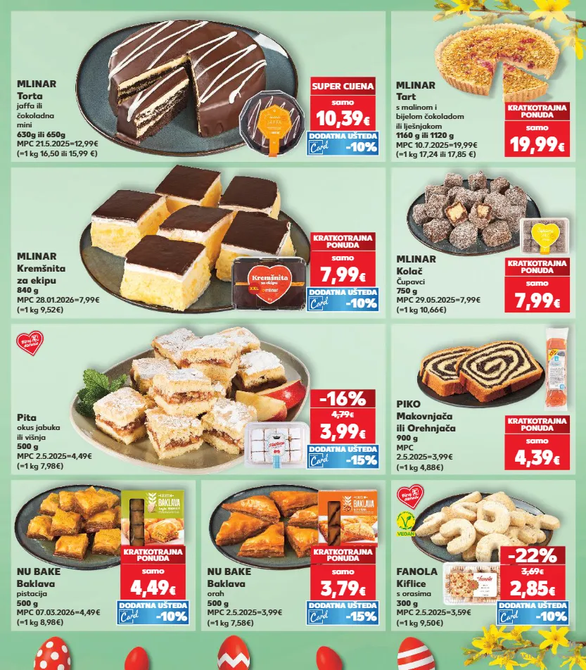 kratkotrajna ponuda kratkotrajna ponuda samo samo kratkotrajna ponuda mlinar kremšnita za ekipu 840 g mpc 28.01.2026=7,99€ (=1 kg 9,52€) piko makovnjača ili orehnjača 900 g mpc 2.5.2025=3,99€ (=1 kg 4,88€) kratkotrajna ponuda pita okus jabuka ili višnja 500 g mpc 2.5.2025=4,49€ (=1 kg 7,98€) -16% kratkotrajna ponuda nu bake baklava orah 500 g mpc 2.5.2025=3,99€ (=1 kg 7,58€) fanola kiflice s orasima 300 g mpc 2.5.2025=3,59€ (=1 kg 9,50€) -22% (=1 kg 17,24 ili 17,85 €) mlinar tart s malinom i bijelom čokoladom ili lješnjakom 1160 g ili 1120 g mpc 10.7.2025=19,99€ kratkotrajna ponuda (=1 kg 10,66€) mlinar kolač čupavci 750 g mpc 29.05.2025=7,99€ kratkotrajna ponuda samo 7,99 € 3,99 € 4,79 € samo 4,39 € kratkotrajna ponuda samo 3,79 € 2,85 € 3,69 € samo 19,99 € samo 7,99 € (=1 kg 16,50 ili 15,99 €) mlinar torta jaffa ili čokoladna mini 630g ili 650g mpc 21.5.2025=12,99€ samo 10,39 € super cijena -10% dodatna ušteda -15% dodatna ušteda -15% dodatna ušteda -10% dodatna ušteda -10% dodatna ušteda (=1 kg 8,98€) nu bake baklava pistacija 500 g mpc 07.03.2026=4,49€ kratkotrajna ponuda samo 4,49 € -10% dodatna ušteda s11-hr-kw14-lft-aktf1_5_2_r-1030-11 11