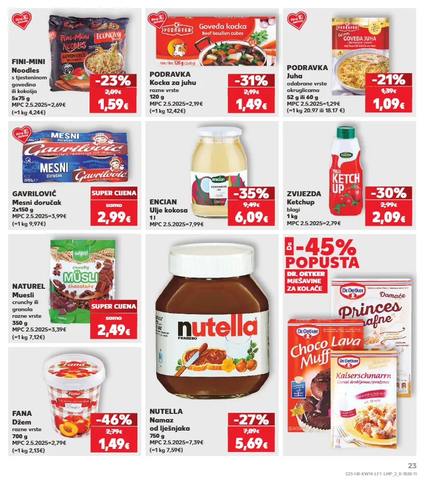 kratkotrajna ponuda kratkotrajna ponuda kratkotrajna ponuda kratkotrajna ponuda kratkotrajna ponuda kratkotrajna ponuda kratkotrajna ponuda kratkotrajna ponuda samo samo samo samo samo samo samo samo kratkotrajna ponuda samo podravka kocka za juhu razne vrste 120 g mpc 2.5.2025=2,19€ (=1 kg 12,42€) gavrilović mesni doručak 2x150 g mpc 2.5.2025=3,99€ (=1 kg 9,97€) fana džem razne vrste 700 g mpc 2.5.2025=2,79€ (=1 kg 2,13€) -31% super cijena encian ulje kokosa 1 l mpc 2.5.2025=7,99€ -35% -46% naturel muesli crunchy ili granola razne vrste 350 g mpc 2.5.2025=3,39€ (=1 kg 7,12€) nutella namaz od lješnjaka 750 g mpc 2.5.2025=7,39€ (=1 kg 7,59€) super cijena -27% (=1 kg 20.97 ili 18.17 €) podravka juha odabrane vrste okruglicama 52 g ili 60 g mpc 2.5.2025=1,29€ -21% zvijezda ketchup blagi 1 kg mpc 2.5.2025=2,79€ -30% 1,49 € 2,19 € 2,99 € samo 6,09 € 9,49 € 1,49 € 2,79 € 2,49 € samo 5,69 € 7,89 € 1,09 € 1,39 € 2,09 € 2,99 € -45 % popusta dr. oetker mješavine za kolače do (=1 kg 4,24€) fini-mini noodles s tjesteninom govedina ili kokošja 5x75 g mpc 2.5.2025=2,69€ 1,59 € -23% 2,09 € s23-hr-kw14-lft-lmp_2_r-1030-11 23