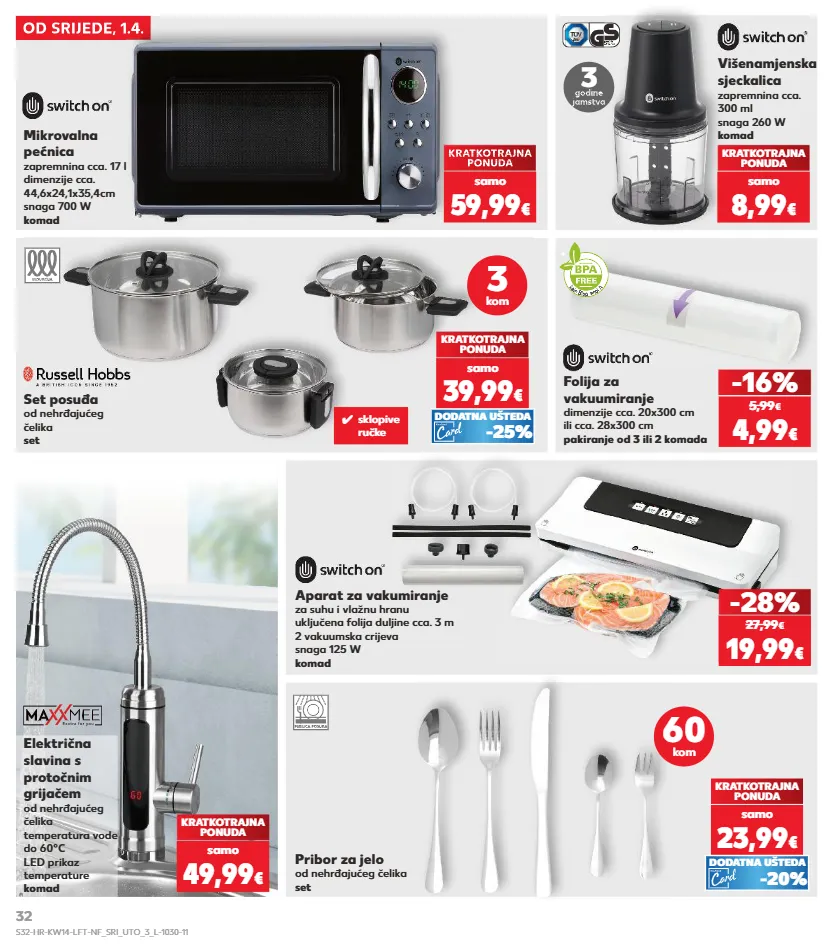 kratkotrajna ponuda kratkotrajna ponuda kratkotrajna ponuda super cijena samo samo samo samo pefc/23-31-86 pefc certified this product is from sustainably managed forests www.pefc.co.uk *sve navedene cijene izražene su u eurima s pdv-om. ne odgovaramo za tiskarske pogreške. fotografije proizvoda ne moraju 100% odgovarati dotičnim proizvodima. proizvode iz aktualne ponude možete kupiti samo u količinama predviđenim za kućanstvo. **pojedini proizvodi označeni kao kratkotrajna ponuda dostupni su količinski i vremenski strogo ograničeno, te je za istima u pravilu potražnja povećana. stoga upućujemo naše cijenjene kupce da je sve detalje oko istih moguće dobiti na našem info-pultu izravno, ili pak unaprijed putem upravljanja odnosa s kupcima, na broj 0800/223 223 ili putem e.maila kontakt@kaufland.hr mpc=maloprodajna cijena u smislu čl. 4. st. 1. t. 11. zakona o zaštiti potrošača (nn 19/22, 59/23) ponuda vrijedi za sve kaufl and trgovine. 0800 / 223 223 (besplatni telefon upravljanja odnosa s kupcima) radno vrijeme upravljanja odnosa s kupcima: pon - pet, od 8:00 do 20:00 / sub od 8:00 do 17:00 ako imate pitanja, prijedloge ili primjedbe – kontaktirajte nas! www.kaufland.hr/kontakt www.kaufland.hr/facebook utorak, 7.4.2026. zatvoreni smo u ponedjeljak, 6.4.2026. zatvoreni smo u ponedjeljak, 6.4.2026. 7.4. 2026. zatvoreni smo u ponedjeljak, 6.4.2026. zatvoreni smo u ponedjeljak, 6.4.2026. zatvoreni smo u ponedjeljak, 6.4.2026. zatvoreni smo u ponedjeljak, 6.4.2026. 234 u online katalogu potraži još proizvoda istraži 4 teme sniženih proizvoda: • slatkiši • kaufland marke • hrana i piće • bebe i djeca utorak mega svinjska rebra mesnata 1 kg mpc 2.5.2025=5,99€ nesquik instant kakao napitak 800 g mpc 2.5.2025=8,99€ (=1 kg 6,74€) super cijena super cijena otkošteni pileći batak i zabatak 1 kg mpc 2.5.2025=5,99€ k a u f l a n d k v a l i t e t a o b e ć a n j e s v j e ž i n e domaći krumpir vrećica 5 kg zemlja porijekla hrvatska mpc 2.5.2025=3,99€ -33% 4,49 € samo 5,39 € samo 4,99 € 7,49 € bodul maslinovo ulje extra djevičansko 1 l mpc 2.5.2025=9,99€ potkošulja 100% pamuk vel. za žene 40-50 vel. za muškarce 5-9 razni dezeni komad kratkotrajna ponuda 1,59 € samo 3,99 € 1 kg = 0,29€ 3,99 3,99 € € samo super cijena 1,4 5 1,45 € € samo super cijena s40-hr-kw14-lft-rs-1030-11