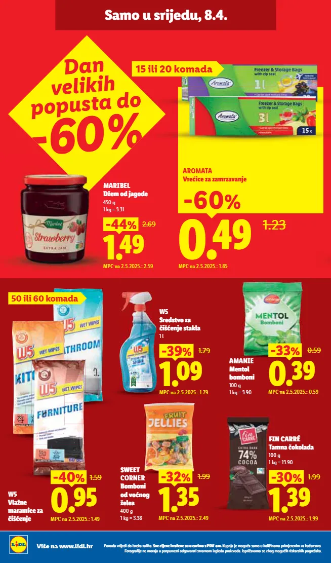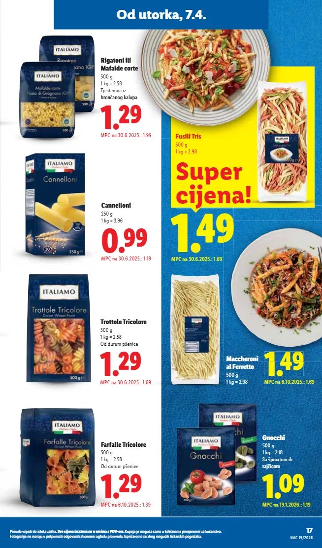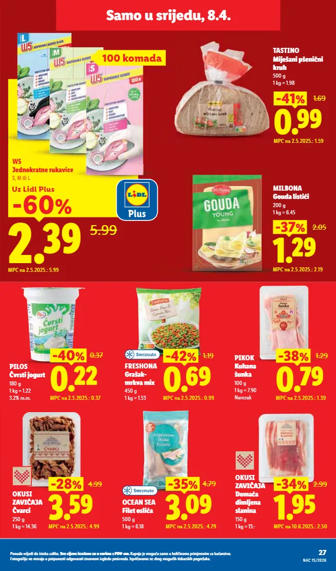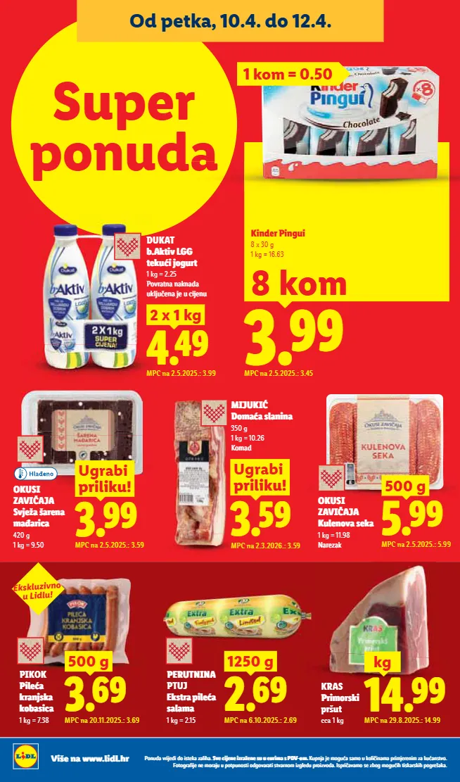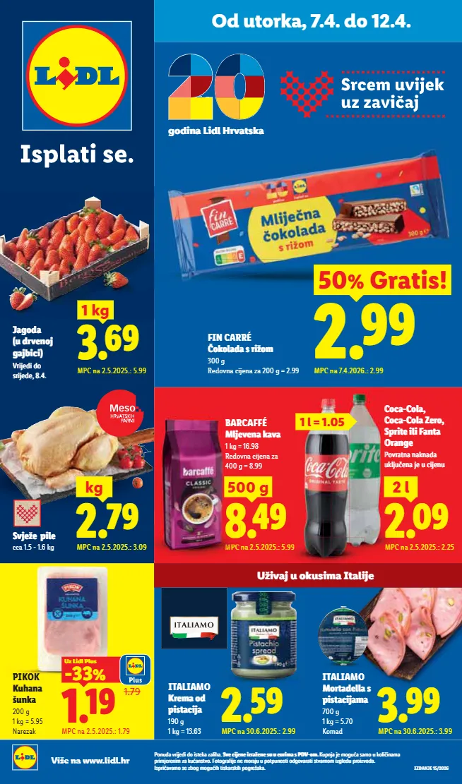ǮàȖȢǽdzĊȞȀȌ¨ǽȀǽàȀóú¨ÏdzėdzȏȀ½dzı ]Ċ¨ȀȌ¨Ȗ¨ȀėȞdzę¨Ȗ¨óȢȢ¨ȢȞȀȕdzóǮǟtƗàȕı ;ȢȝȖȌdzȌ¨ȕà¸ȢdzódzȕàȢÏàȏȀ ȀȖdzȕdz ȝȞȀȕȌ¨Ȟ¨ȖȀȕėdzÏȢdzȖóúĊàı%àúà¸Ȟdz³ȀȌ¨Ȗ¨ȕàȞdzȌȢȢȝàúȝȢȖàóúȀàǽ¸àĊdzȞdzúȀóúĊdzȞȖàȕȀė¸ȏ¨ǽȢȝȞàȀėĊàǽdzı ǣóȝȞȀ dzĊdzȕàó¨ėà¸ȕà¸ȢȀ½úȀóÏdzȞóÏȀ½ȝà¸Ȟ¨õdzÏdzı Više na www.lidl.hr IZDANJE 15/2026 Od utorka, 7.4. do 12.4. ięÀĊÌÿàÏÿóÀØ.úÒĄ̀ ]Ċ̨ę¨ìÀÒ¨ cca 1.5 - 1.6 kg MPC na 2.5.2025.: 2.25 emÉÒ ƞÒ MPC na 2.5.2025.: 5.99 kmÍÒ 500 g M M MP MPC 5 M M M M M M M MPC na 2.5.2025.: 3.09 emÐÒ kg BARCAFFÉ CǪ̀Ċ¨ÙÏĊ 1 kg = 16.98 Redovna cijena za 400 g = 8.99 àƗàÒİ àƗàÒ¨ïàİ ]ìïȀú¨ÀÒÀ%Ùú JïÙ¸¨ VàĊïúȖÙÏÙ¤ ÿÏÒÌÿ ¨Ų̀ÿĄ̀Ùÿ PIKOK ;ÿ½Ù õÿÙÏ 200 g 1 kg = 5.95 Narezak ¸à¤ÀÙ=À¤Ò+ïĊúóÏ FIN CARRÉ àÏàÒ¤óïȀęàØ 300 g Redovna cijena za 200 g = 2.99 emÒÒ ơƜԿ&ïúȀóĸ MPC na 7.4.2026.: 2.99 MPC ] J V ÿ 99 ƝÒŽƝıƜơ MPC na 30.6.2025.: 3.99 U=¬¬ ITALIAMO Càïú¤¨ÒÒó ìÀóúÀÌØ 700 g 1 kg = 5.70 Komad MPC na 30.6.2025.: 2.99 T=¨¬ ITALIAMO ;ï¨Øà¤ ìÀóúÀÌ 190 g 1 kg = 13.63 dmÊÒ iė=À¤ÒVÒÿó ƗƟƟԿ 1.79 MPC na 2.5.2025.: 1.79 9¸à¤ ƍÿ¤ïĊ¨ÙàÌ ¸ÌÀÀƎ tïĄ̏¤À¤à óïĄ̏¤¨İƤıƠı MPC na 2.5.2025.: 5.99 fmÏÒ 1 kg
