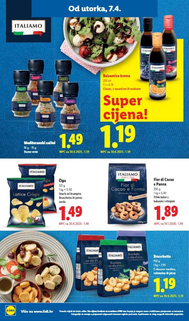 XXL .óìÒúȀó¨ı emÊÒ ]Ċ̨ęÀìÿŲ̀ÙÀ ¸Ùà½À 400 g ili 500 g 1 kg = 4.38 ili 5.48 Razne vrste Super cijena! MPC na 19.1.2026.: 2.39 ili 7.4.2026.: 2.19 = 4.38 ili ili 5. 5. 5.48 48 8 ne e vrs vrs rste t iØÀė úȌ¨óú¨ÙÀÙÿ 350 g 1 kg = 4.54 Razne vrste MPC na 6.10.2025.: 1.59 S=¨¬ iØÀė úȌ¨óú¨ÙÀÙÿ 340 g 1 kg = 6.44 Carbonara ili 4 vrste sira MPC na 30.6.2025.: 2.19 T=¤¬ ]ÿõ¨Ù ïÌ À 230 g 1 kg = 7.35 U suncokretovom ulju MPC na 19.1.2025.: 1.69 S=©¬ ;ìï¨ 370 ml 1 l = 4.84 MPC na 30.6.2025.: 1.99 S=ª¬ ¨Ò¨Ù¨ ØóÒÀÙ¨ 720 ml 1 l = 3.18 ]ÏàõúȀàØ MPC na 30.6.2025.: 2.29 T=¥¬ V¨óúà 180 g 1 kg = 9.39 Siciliana ili Trapanese MPC na 30.6.2025.: 1.69 S=©¬ ]ÿõ¨Ù¨ ïÌ À¨ 100 g 1 kg = 16.90 Sušene na suncu MPC na 30.6.2025.: 1.79 S=©¬ 9 9 Više na www.lidl.hr ǮàȖȢǽdzĊȞȀȌ¨ǽȀǽàȀóú¨ÏdzėdzȏȀ½dzı ]Ċ¨ȀȌ¨Ȗ¨ȀėȞdzę¨Ȗ¨óȢȢ¨ȢȞȀȕdzóǮǟtƗàȕı ;ȢȝȖȌdzȌ¨ȕà¸ȢdzódzȕàȢÏàȏȀ ȀȖdzȕdzȝȞȀȕȌ¨Ȟ¨ȖȀȕėdzÏȢdzȖóúĊàı %àúà¸Ȟdz³ȀȌ¨Ȗ¨ȕàȞdzȌȢȢȝàúȝȢȖàóúȀàǽ¸àĊdzȞdzúȀóúĊdzȞȖàȕȀė¸ȏ¨ǽȢȝȞàȀėĊàǽdzıǣóȝȞȀ dzĊdzȕàó¨ėà¸ȕà¸ȢȀ½úȀóÏdzȞóÏȀ½ȝà¸Ȟ¨õdzÏdzı Od utorka, 7.4.