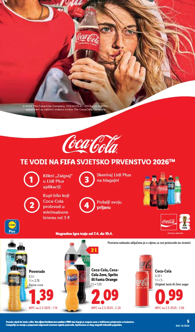 MPC na 2.5.2025.: 1.19 Powerade 0.5 l 1 l = 2.78 Razne vrste S=¦¬ Coca-Cola, Coca- àÒ¨ïàİ]ìïȀú¨ ÀÒÀ%ÙúJïÙ¸¨ 1 l = 1.05 T=£¬ MPC na 2.5.2025.: 2.28 Coca-Cola 0.33 l 1 l = 3.- JïȀ¸ÀÙÒúóú¨ÀÒÀ¨ïàóÿ¸ï R=¬¬ MPC na 2.5.2025.: 1.08 TE VODI NA FIFA SVJETSKO PRVENSTVO 2026 TM D¸ï¤ÙÀ¸ïúȞ̨à¤ƣıƠı¤àƝƥıƠı 1 2 3 4 Klikni „Zaigraj“ u Lidl Plus aplikaciji Kupi bilo koji Coca-Cola proizvod u minimalnom iznosu od 3 € Skeniraj Lidl Plus na blagajni Pošalji svoju ìïȀÌĊÿ 2 l VàĊïúȖÙÏÙ¤ÿÏÒÌÿ ¨Ų̀ÿĄ̀ÙÿėóĊ¨ìïàÀėĊनÙóúȞÙÀÀ 5 ǮàȖȢǽdzĊȞȀȌ¨ǽȀǽàȀóú¨ÏdzėdzȏȀ½dzı ]Ċ¨ȀȌ¨Ȗ¨ȀėȞdzę¨Ȗ¨óȢȢ¨ȢȞȀȕdzóǮǟtƗàȕı ;ȢȝȖȌdzȌ¨ȕà¸ȢdzódzȕàȢÏàȏȀ ȀȖdzȕdzȝȞȀȕȌ¨Ȟ¨ȖȀȕėdzÏȢdzȖóúĊàı %àúà¸Ȟdz³ȀȌ¨Ȗ¨ȕàȞdzȌȢȢȝàúȝȢȖàóúȀàǽ¸àĊdzȞdzúȀóúĊdzȞȖàȕȀė¸ȏ¨ǽȢȝȞàȀėĊàǽdzıǣóȝȞȀ dzĊdzȕàó¨ėà¸ȕà¸ȢȀ½úȀóÏdzȞóÏȀ½ȝà¸Ȟ¨õdzÏdzı NAC 15/2026