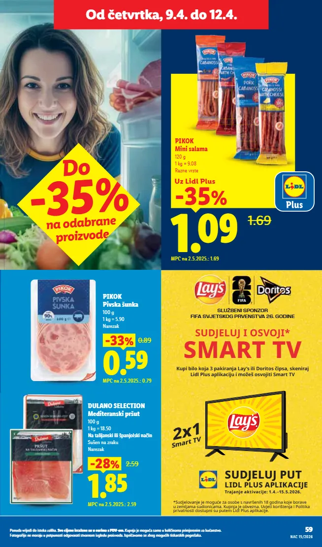 uz lidl plus ɨɵơկ dméò mpc na 2.5.2025.: 1.69 1.69 pikok mini salama 120 g 1 kg = 9.08 razne vrste pikok pivska šunka 100 g 1 kg = 5.90 narezak cmîò ɨɵɵկ 0.89 mpc na 2.5.2025.: 0.79 dulano selection mediteranski pršut 100 g 1 kg = 18.50 dúòàìùóïààòàõìùìàòóïàù àù sušen na zraku narezak dmñî ɨƞƥկ 2.59 mpc na 2.5.2025.: 2.59 do -35% na odabrane proizvode j¤ ¨úċïúïi̇ƥıơı¤àɲƞıơı 2x1 smart tv kupi bilo koja 3 pakiranja lay’s ili doritos č ipsa, skeniraj lidl plus aplikaciju i možeš osvojiti smart tv sudjeluj i osvoji* smart tv službeni sponzor fifa svjetskog prvenstva 26. godine *sudjelovanje je mogu ć e za osobe s navršenih 18 godina koje borave u zemljama sudionicama. kupnja je obvezna. uvjeti korištenja i politika privatnosti dostupni su putem lidl plus aplikacije. sudjeluj put lidl plus aplikacije trajanje aktivacije: 1.4.–15.5.2026. ơƥ ǯàȗȣǽdzċȟȁȍ¨ǽȁǽàȁóú¨ïdzėdzȏȁ½dzı ]ċ¨ȁȍ¨ȗ¨ȁėȟdzę¨ȗ¨óȣȣ¨ȣȟȁȕdzóǯǟtɨàȕı ;ȣȝȗȍdzȍ¨ȕà¸ȣdzódzȕàȣïàȏȁ ȁȗdzȕdzȝȟȁȕȍ¨ȟ¨ȗȁȕėdzïȣdzȗóúċàı %àúà¸ȟdz³ȁȍ¨ȗ¨ȕàȟdzȍȣȣȝàúȝȣȗàóúȁàǽ¸àċdzȟdzúȁóúċdzȟȗàȕȁė¸ȏ¨ǽȣȝȟàȁėċàǽdzıǣóȝȟȁ dzċdzȕàó¨ėà¸ȕà¸ȣȁ½úȁóïdzȟóïȁ½ȝà¸ȟ¨õdzïdzı nac 15/2026