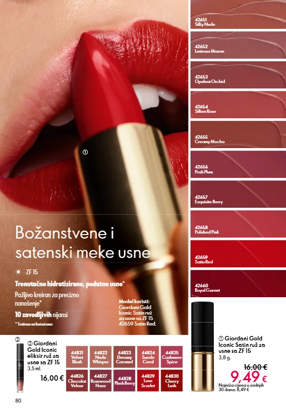 22 41635 Nonstop Nude 41636 Infinite Peach 41637 Perpetual Blush 41638 Forever Truffle 41639 Everlasting Rose 41640 Timeless Mauve 41641 Constant Coral 41642 Resolute Red THE ONE Colour Unlimited Matte ruž za usne 2,5 g. 9,50 € 4,49 € Najniža cijena u zadnjih 30 dana: 4,49 € 41635 Nonstop Nude Impresivan dojam za IMPRESIVNIH 30 GODINA ORIFLAME HRVATSKA Besprijekorne mat usne s lakoćom