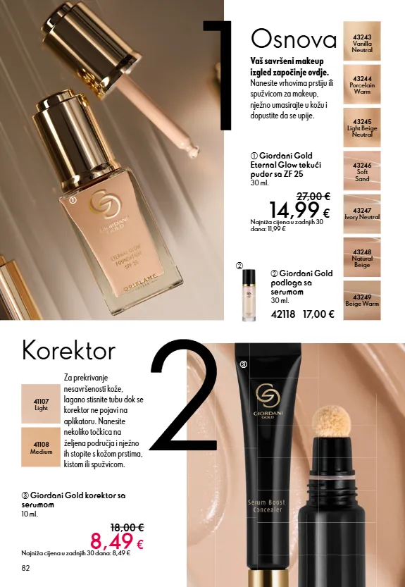 36 novage+ multi-active anti-ageing dnevna krema bogate teksture sa zf 30 50 ml. šifra uzorka 43890. 41048 33,00 € novage+ multi-active anti-ageing dnevna krema lagane teksture sa zf 30 50 ml. šifra uzorka 43888. 41044 33,00 € novage+ multi-active anti-ageing noćna krema lagane teksture 50 ml. šifra uzorka 43904. 41057 33,00 € novage+ multi-active anti-ageing noćna krema bogate teksture 50 ml. šifra uzorka 43905. 41058 33,00 € novage+ restore multi-recover noćna krema 50 ml. šifra uzorka 45922. 44285 39,00 € novage+ restore multi-correcting dnevna krema sa zf 30 50 ml. šifra uzorka 45921. 44098 39,00 € korak hidratacija noćne kreme serum novage+ refresh gel za čišćenje lica 150 ml. šifra uzorka 43901. 41029 26,00 € 19,99 € najniža cijena u zadnjih 30 dana: 26,00 € korak korak područje oko očiju čišćenje korak novage+ lift + firm krema za područje oko očiju 15 ml. šifra uzorka 43894. 42425 26,00 € 19,99 € najniža cijena u zadnjih 30 dana: 26,00 € novage+ wrinkle smooth krema za područje oko očiju 15 ml. šifra uzorka 43893. 41034 26,00 € 19,99 € najniža cijena u zadnjih 30 dana: 26,00 € novage+ bright intense krema za područje oko očiju 15 ml. šifra uzorka 43892. 41033 26,00 € 19,99 € najniža cijena u zadnjih 30 dana: 26,00 € novage+ restore renewing krema za područje oko očiju i usana 15 ml. šifra uzorka 45920. 41070 29,00 € 21,99 € najniža cijena u zadnjih 30 dana: 29,00 € novage+ comfort oil- to-milk ulje za čišćenje lica 150 ml. šifra uzorka 43902. 41032 26,00 € novage+ bright intense serum 30 ml. šifra uzorka 43898. 41040 44,00 € novage+ lift + firm serum 30 ml. šifra uzorka 43896. 41037 44,00 € novage+ wrinkle smooth serum 30 ml. šifra uzorka 43897. 41035 44,00 € novage+ blemish + age defy serum 30 ml. šifra uzorka 43899. 41039 44,00 € novage+ restore renewing serum za lice 30 ml. šifra uzorka 45919. 41075 43,00 € kreme za oko očiju 20% popusta dnevne kreme