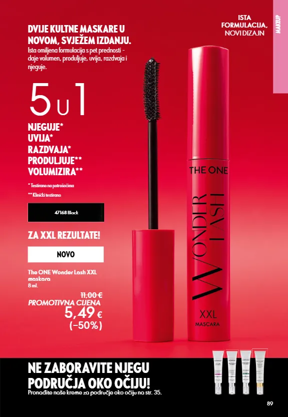 20 the one double effect maskara 8 ml. 11,00 € 5,49 € najniža cijena u zadnjih 30 dana: 4,99 € volumen - do 11x veći volumen u odnosu na trepavice bez maskare ∆ dužina/definicija - 60% veća dužina u odnosu na trepavice bez maskare i klinički dokazana definicija ∆ ∆ klinički testirano 42780 black