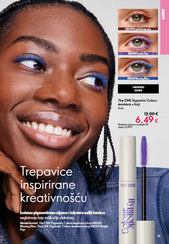 21 * Testirano na korisnicama 46351 Peach Perfect 46353 Granite Grey 46352 Sandy Bronze 43350 Sunset Rose 43347 Emerald Green 43348 Dusty Champagne Vodootporno* Ne razmazuje se* Ne nakuplja se u pregibima* a The ONE Colour Unlimited sjenilo i olovka za kapke 1,2 g. 14,00 € 8,99 € Najniža cijena u zadnjih 30 dana: 7,49 € Prepustite se RAZIGRANOJ KREATIVNOSTI b Dvostrani kist za makeup očiju Veličina: 14 cm. Materijal: PBT, aluminij i drvo. 47830 6,00 € 3,99 € Najniža cijena u zadnjih 30 dana: 2,49 € Gusti ravni kist i kist za blendanje TRENUCI UŽIVANJA b a