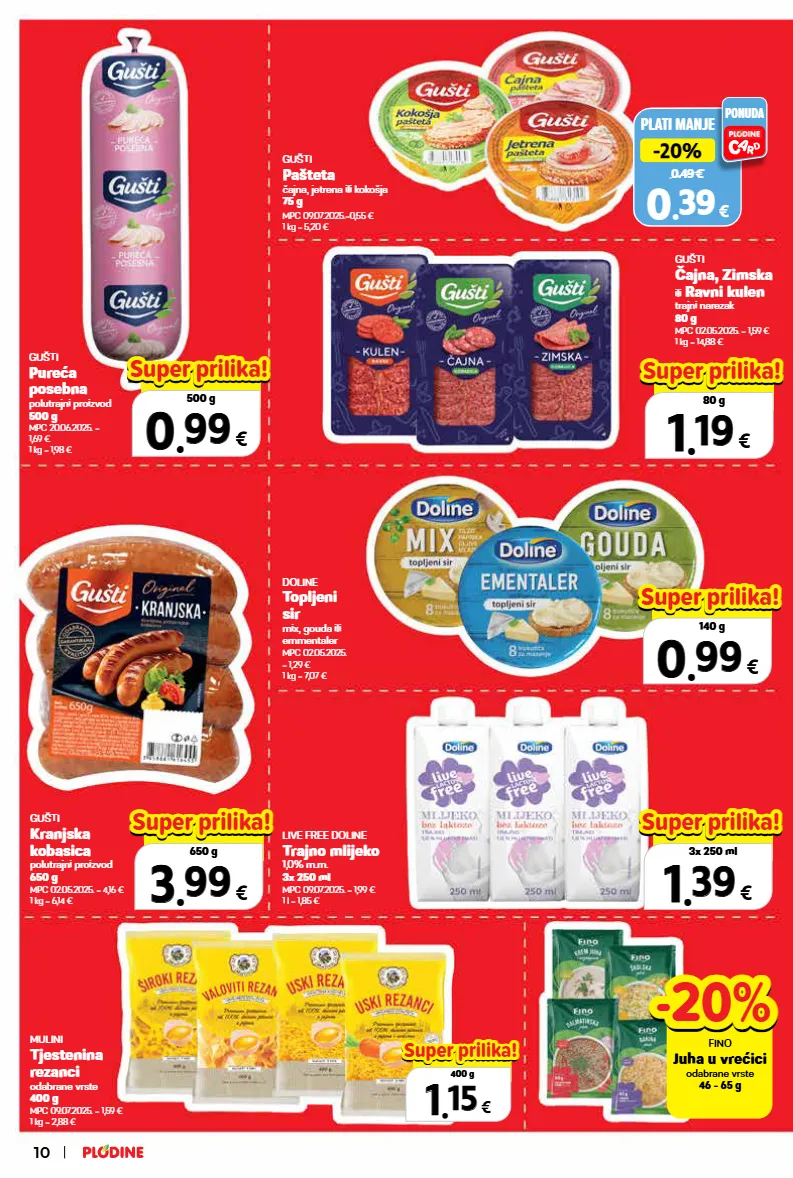gušti pureća posebna polutrajni proizvod 500 g mpc 20.06.2025. = 1,69 € 1 kg = 1,98 € gušti čajna, zimska ili ravni kulen trajni narezak 80 g mpc 02.05.2025. = 1,59 € 1 kg = 14,88 € gušti kranjska kobasica polutrajni proizvod 650 g mpc 02.05.2025. = 4,16 € 1 kg = 6,14 € plati manje 0.49 € -20% -20% 0 0 . . 39 39 € ponuda gušti pašteta čajna, jetrena ili kokošja 75 g mpc 09.07.2025.=0,55 € 1 kg = 5,20 € doline topljeni sir mix, gouda ili emmentaler mpc 02.05.2025. = 1,29 € 1 kg = 7,07 € top cijena! već od hit cijena! 0 0 . . 99 99 € 140 g super prilika! super prilika! top cijena! već od hit cijena! 1 1 . . 19 19 € 80 g super prilika! super prilika! top cijena! već od hit cijena! 1 1 . . 15 15 € 400 g super prilika! super prilika! top cijena! već od hit cijena! 1 1 . . 39 39 € 3x 250 ml super prilika! super prilika! mulini tjestenina rezanci odabrane vrste 400 g mpc 09.07.2025. = 1,59 € 1 kg = 2,88 € live free doline trajno mlijeko 1,0% m.m. 3x 250 ml mpc 09.07.2025. = 1,99 € 1 l = 1,85 € fino juha u vrećici odabrane vrste 46 - 65 g -20% -20% top cijena! već od hit cijena! 3 3 . . 99 99 € 650 g super prilika! super prilika! top cijena! već od hit cijena! 0 0 . . 99 99 € 500 g super prilika! super prilika! 10
