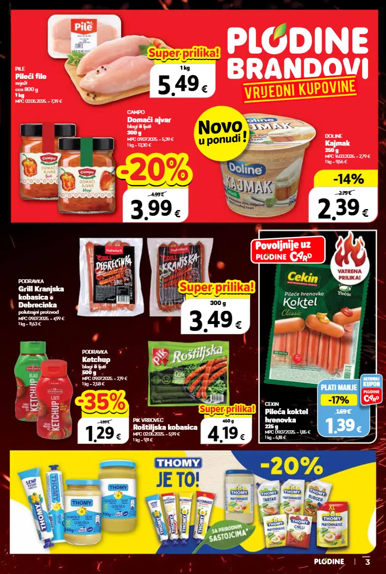 plati manje 1.69 € -17% -17% 1 1 . . 39 39 € aktiviraj kupon cekin pileća koktel hrenovka 225 g mpc 09.07.2025. = 1,85 € 1 kg = 6,18 € podravka grill kranjska kobasica ili debrecinka polutrajni proizvod mpc 09.07.2025. = 4,99 € 1 kg = 11,63 € top cijena! već od hit cijena! 3 3 . . 49 49 € 300 g super prilika! super prilika! pik vrbovec roštiljska kobasica mpc 02.05.2025. = 5,99 € 1 kg = 9,11 € top cijena! već od hit cijena! 4 4 . . 19 19 € 460 g super prilika! super prilika! podravka ketchup blagi ili ljuti 500 g mpc 09.07.2025. = 2,19 € 1 kg = 2,58 € campo domaći ajvar blagi ili ljuti 300 g mpc 09.07.2025. = 5,39 € 1 kg = 13,30 € 3 3 . . 99 99 € xxxxx 4.99 € -20% -20% 2 2 . . 39 39 € 250 g -14% -14% 2.79 € doline kajmak 250 g mpc 16.03.2026. = 2,79 € 1 kg = 9,56 € 1 1 . . 29 29 € xxxxx 1.99 € -35% -35% pile pileći file svježi cca 800 g 1 kg mpc 02.05.2025. = 7,39 € top cijena! već od hit cijena! 5 5 . . 49 49 € 1 kg super prilika! super prilika! novo u ponudi ! povoljnije uz 3