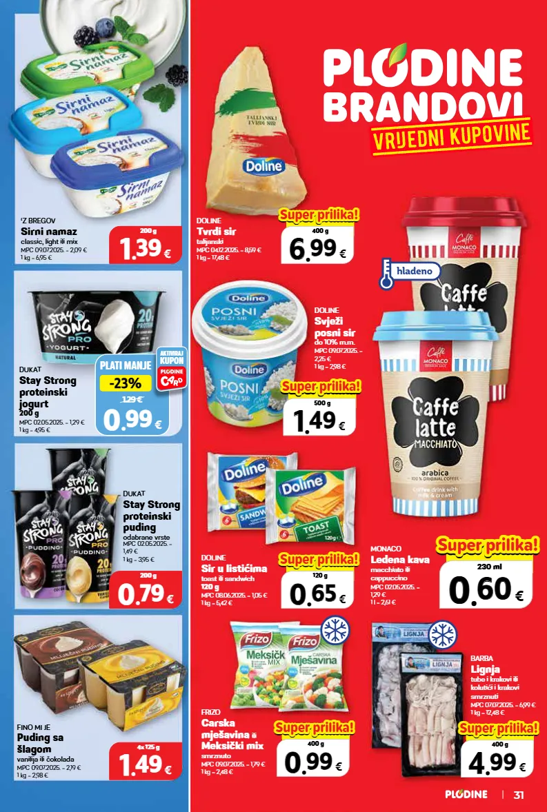 doline tvrdi sir talijanski mpc 04.12.2025. = 8,59 € 1 kg = 17,48 € monaco ledena kava macchiato ili cappuccino mpc 02.05.2025. = 1,29 € 1 l = 2,61 € dukat stay strong proteinski puding odabrane vrste mpc 02.05.2025. = 1,49 € 1 kg = 3,95 € fino mi je puding sa šlagom vanilija ili čokolada mpc 09.07.2025. = 2,19 € 1 kg = 2,98 € ‘z bregov sirni namaz classic, light ili mix mpc 09.07.2025. = 2,09 € 1 kg = 6,95 € barba lignja tube i krakovi ili kolutići i krakovi smrznuti mpc 07.07.2025. = 6,99 € 1 kg = 12,48 € frizo carska mješavina ili meksički mix smrznuto mpc 09.07.2025. = 1,79 € 1 kg = 2,48 € top cijena! već od hit cijena! 6 6 . . 99 99 € 400 g super prilika! super prilika! top cijena! već od hit cijena! 0 0 . . 99 99 € 400 g super prilika! super prilika! top cijena! već od hit cijena! 1 1 . . 49 49 € 500 g super prilika! super prilika! top cijena! već od hit cijena! 0 0 . . 60 60 € 230 ml super prilika! super prilika! top cijena! već od hit cijena! 0 0 . . 65 65 € 120 g super prilika! super prilika! top cijena! već od hit cijena! 4 4 . . 99 99 € 400 g super prilika! super prilika! doline svježi posni sir do 10% m.m. mpc 09.07.2025. = 2,25 € 1 kg = 2,98 € plati manje 1.29 € -23% -23% 0 0 . . 99 99 € aktiviraj kupon 0 0 . . 79 79 € 200 g dukat stay strong proteinski jogurt 200 g mpc 02.05.2025. = 1,29 € 1 kg = 4,95 € 1 1 . . 49 49 € 4x 125 g 1 1 . . 39 39 € 200 g doline sir u listićima toast ili sandwich 120 g mpc 08.06.2025. = 1,05 € 1 kg = 5,42 € hlađeno 31