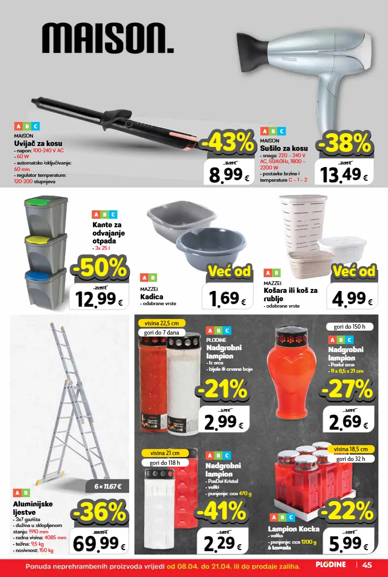 Ponavljamo stranice koje se isplati pogledati! JOŠ SAMO TJEDAN DANA! Najtraženiji neprehrambeni artikli iz prošlog kataloga I DALJE SU U PONUDI. vrijedi od 08.04. do 14.04. Ponuda neprehrambenih proizvoda vrijedi od 08.04. do 14.04. ili do prodaje zaliha. 49