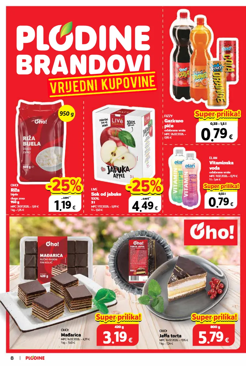 oho! jaffa torta mpc 16.02.2026. = 9,95 € 1 kg = 7,24 € oho! mađarica mpc 16.02.2026. = 4,29 € 1 kg = 7,60 € oho! riža bijela dugo zrno 950 g mpc 31.07.2025. = 1,59 € 1 kg = 1,25 € live sok od jabuke 100% 3 l mpc 17.12.2025. = 5,99 € 1 l = 1,50 € elan vitaminska voda odabrane vrste mpc 11.02.2026. = 0,79 € 1 l = 1,44 € fizzy gazirano piće odabrane vrste mpc 26.02.2026. = 0,95 € top cijena! već od hit cijena! 0 0 . . 79 79 € 0,55 l super prilika! super prilika! top cijena! već od hit cijena! 0 0 . . 79 79 € 0,33 - 1,5 l super prilika! super prilika! 4 4 . . 49 49 € xxxxx 5.99 € -25% -25% 1 1 . . 19 19 € xxxxx 1.59 € -25% -25% top cijena! već od hit cijena! 3 3 . . 19 19 € 420 g super prilika! super prilika! top cijena! već od hit cijena! 5 5 . . 79 79 € 800 g super prilika! super prilika! 950 g 8