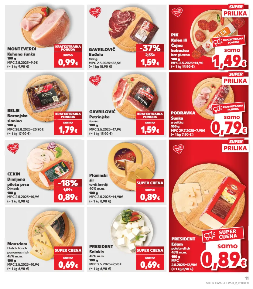 kratkotrajna ponuda kratkotrajna ponuda kratkotrajna ponuda kratkotrajna ponuda kratkotrajna ponuda samo samo samo samo samo samo samo samo belje baranjska slanina 100 g mpc 28.8.2025=20,90€ (= 1 kg 17,90 €) gavrilović petrinjska šunka 100 g mpc 2.5.2025=17,9€ (= 1 kg 15,90 €) kratkotrajna ponuda pik kulen ili čajna kobasica bez glutena 100 g mpc 2.5.2025=14,9€ (= 1 kg 14,90 €) kratkotrajna ponuda cekin dimljena pileća prsa dimcek 100 g mpc 2.5.2025=10,9€ (= 1 kg 8,90 €) planinski sir tvrdi, kravlji 40% m.m. 100 g mpc 2.5.2025=14,90€ (= 1 kg 8,90 €) -18% super cijena president edam polutvrdi sir 45% m.m. 100 g mpc 2.5.2025=12,90€ (= 1 kg 8,90 €) president salakis 45% m.m. 100 g mpc 2.5.2025=7,90€ (= 1 kg 6,90 €) maasdam dutch touch punomasni sir 45% m.m. 100 g mpc 2.5.2025=10,9€ (= 1 kg 6,90 €) super cijena super cijena (= 1 kg 9,90 €) monteverdi kuhana šunka 100 g mpc 2.5.2025=9,9€ kratkotrajna ponuda (= 1 kg 15,90 €) gavrilović buđola 100 g mpc 2.5.2025=22,5€ -37% podravka šunka u ovitku 100 g mpc 29.7.2025=7,90€ (= 1 kg 7,90 € ) 1,79 € samo 1,59 € samo 0,89 € 1,09 € 0,89 € samo 0,69 € samo 0,69 € samo 0,99 € samo 1,59 € 2,53 € 0,8 9 0,89 € € samo super cijena 0,79 € samo kratkotrajna ponuda 1,49 € samo kratkotrajna ponuda prilika super prilika super prilika super s11-hr-kw15-lft-wuk_2_r-1030-11 11
