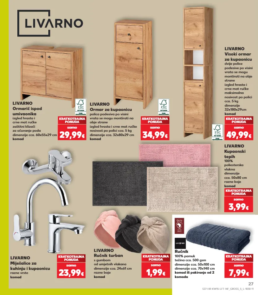 livarno ormar za kupaonicu polica podesiva po visini vrata se mogu montirati na obje strane izgled hrasta i crne mat ručke nosivost po polici cca. 5 kg dimenzije cca. 32x80x29 cm komad kratkotrajna ponuda samo 34,99 € livarno visoki ormar za kupaonicu dvije police podesive po visini vrata se mogu montirati na obje strane izgled hrasta i crne mat ručke maksimalna nosivost po polici cca. 5 kg dimenzije 32x180x29cm komad kratkotrajna ponuda samo 49,99 € livarno ormarić ispod umivaonika izgled hrasta i crne mat ručke zaštitni klizači za očuvanje poda dimenzije cca. 60x55x29 cm komad kratkotrajna ponuda samo 29,99 € ručnik 100% pamuk težina cca. 500 gsm dimenzije cca. 50x100 cm dimenzije cca. 70x140 cm komad ili pakiranje od 2 komada kratkotrajna ponuda samo 7,99 € livarno ručnik turban s gumbom od umjetnih vlakana dimenzije cca. 24x61 cm razne boje komad kratkotrajna ponuda samo 1,99 € livarno kupaonski tepih 100% poliesterska vlakna dimenzije cca. 50x80 cm razne boje komad kratkotrajna ponuda samo 3,99 € livarno miješalice za kuhinju i kupaonicu razne vrste komad kratkotrajna ponuda samo 23,99 € s27-hr-kw15-lft-nf_gross_5_l-1030-11 27